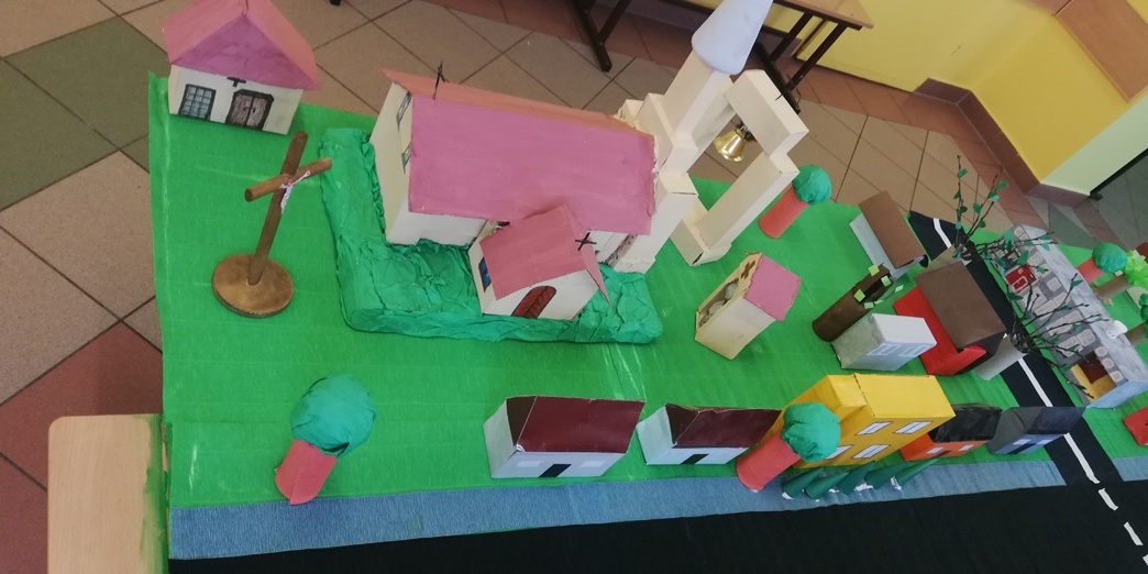 W piątek 29 stycznia uczestnicy projektu spotkali się w szkole, żeby dokonać montażu makiety. Jej wymiary to 1,5 m szerokości na 3 m długości. Tego samego dnia po południu Kacper Tyczkowski i Michał Kozyra w ramach prac projektowych spotkali się z księdzem proboszczem A. Czubaszewskim, aby odszukać w księgach parafialnych jak najwięcej informacji dotyczących archiwalnych danych na temat pani Marianny Szygenda. W księgach parafialnych udało nam się odnaleźć metrykę chrztu, akt ślubu, oraz akt zgonu Pani Marianny. Wszystkie daty są niezbędne do przygotowania drzewa genealogicznego . Odwiedziliśmy także cmentarz parafialny, gdzie została pochowana bohaterka naszego projektu oraz członkowie jej rodziny.