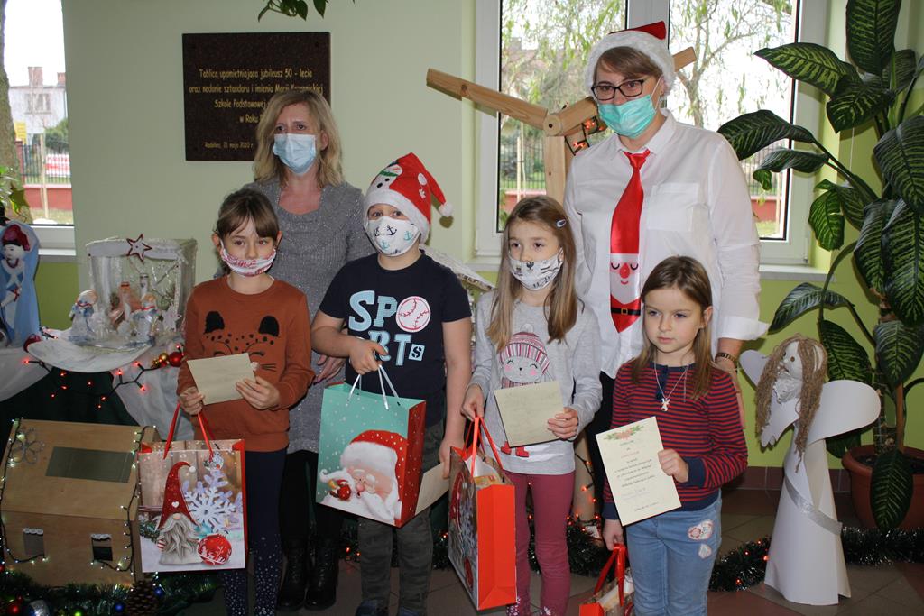 Łącznie na konkurs wpłynęło 105 prac. Miło nam, że wśród uczestników znaleźli się również uczniowie naszej szkoły, którzy wykonali przepiękne bombki z różnych materiałów. Jury w składzie: Damian Ciesielski, Edyta Jachnik, Arkadiusz Maślak i Przemysław Ciesielski wyróżniło prace poszczególnych uczniów, w tym również uczniów naszej szkoły. W kategorii PRZEDSZKOLE nagrodę otrzymał Julian Głowacki, w kategorii klas I-III nagrodę otrzymała Wiktoria Głowacka z kl. I, w kategorii klas IV-VI nagrodę otrzymała Wioletta Tyderka z kl. VI, w kategorii klas VII-VIII nagrodę otrzymała Michalina Kurleto z kl. VII. Serdecznie gratulujemy zwycięzcom! Dziękujemy wszystkim naszym uczniom za udział w konkursie. Gratulujemy Wam! Każda praca byłą wspaniałym rękodziełem!