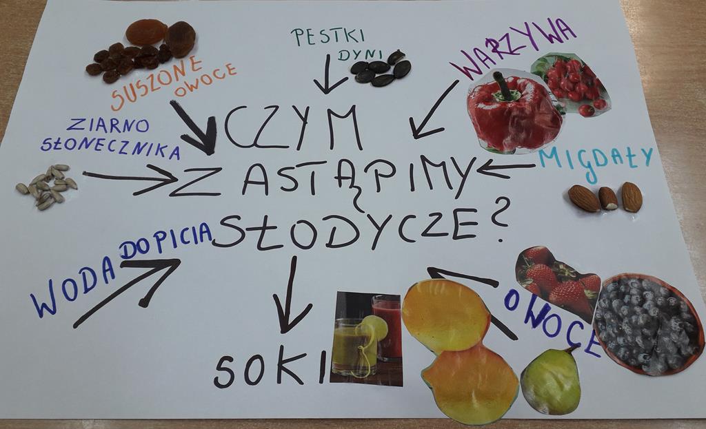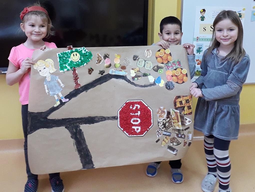 Udział w zajęciach miał na celu uświadomienie dzieciom, jak ważną role pełnią w codziennej diecie owoce i warzywa. Kształtowanie prawidłowych nawyków żywieniowych u dzieci uczy je odpowiedzialności za swoje zdrowie już od najmłodszych lat. Poprzez udział w projekcie 6-latki miały możliwość utrwalić posiadaną już wiedzę na temat warzyw i owoców, jak i również zdobyć nowe informacje. Podczas zajęć dzieci uczestniczyły w różnych zabawach: „Moje warzywko – odgadnę szybko, potrzebna pomoc – jaki to owoc?”, „Sałatka jarzynowa”. Mogły się również wcielić w rolę aktorów podczas pantomimy do hasła „Lubimy słodycze, ale nie powinniśmy ich jeść, abyśmy nie byli otyli”. W naszych działaniach nie zabrakło również doświadczeń. Sprawdzaliśmy zawartość cukru w napojach wysoko słodzonych. Szukaliśmy odpowiedzi na pytania: Dlaczego dzieci powinny jeść warzywa i owoce?, Czym można zastąpić słodycze? Rozmawialiśmy o negatywnych skutkach nadmiernego jedzenia słodyczy. W ramach konkursu „Reklama zdrowych słodyczy” chcieliśmy uzmysłowić, że warto dokonać zmiany niezdrowych słodyczy na rzecz tych zdrowych czyli przygotowanych bez dodatku cukru. Do tej grupy należą owce, które zawierają w sobie naturalny cukier. Warto też sięgnąć po suszone owoce, pestki dyni, ziarna słonecznika, orzechy czy migdały.