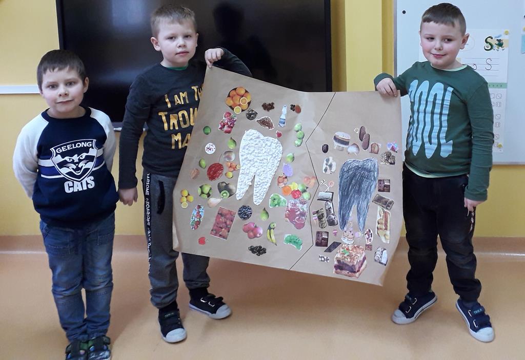 W minionym półroczu dzieci z oddziału zerowego uczestniczyły prozdrowotnym projekcie „Zdrowo jem, więcej wiem” prowadzonym przez Fundację Banku Ochrony Środowiska. Etap jesienno-zimowy obejmował do zrealizowania pięć zadań: Lekcja: Poznajemy owoce i warzywa Konkurs: Najlepszy rysunek „Jem owoce i warzywa” Lekcja: Cukier? Nie, dziękuję! Konkurs: Reklama zdrowych słodyczy Dzielimy się wiedzą: Kolorowy talerz