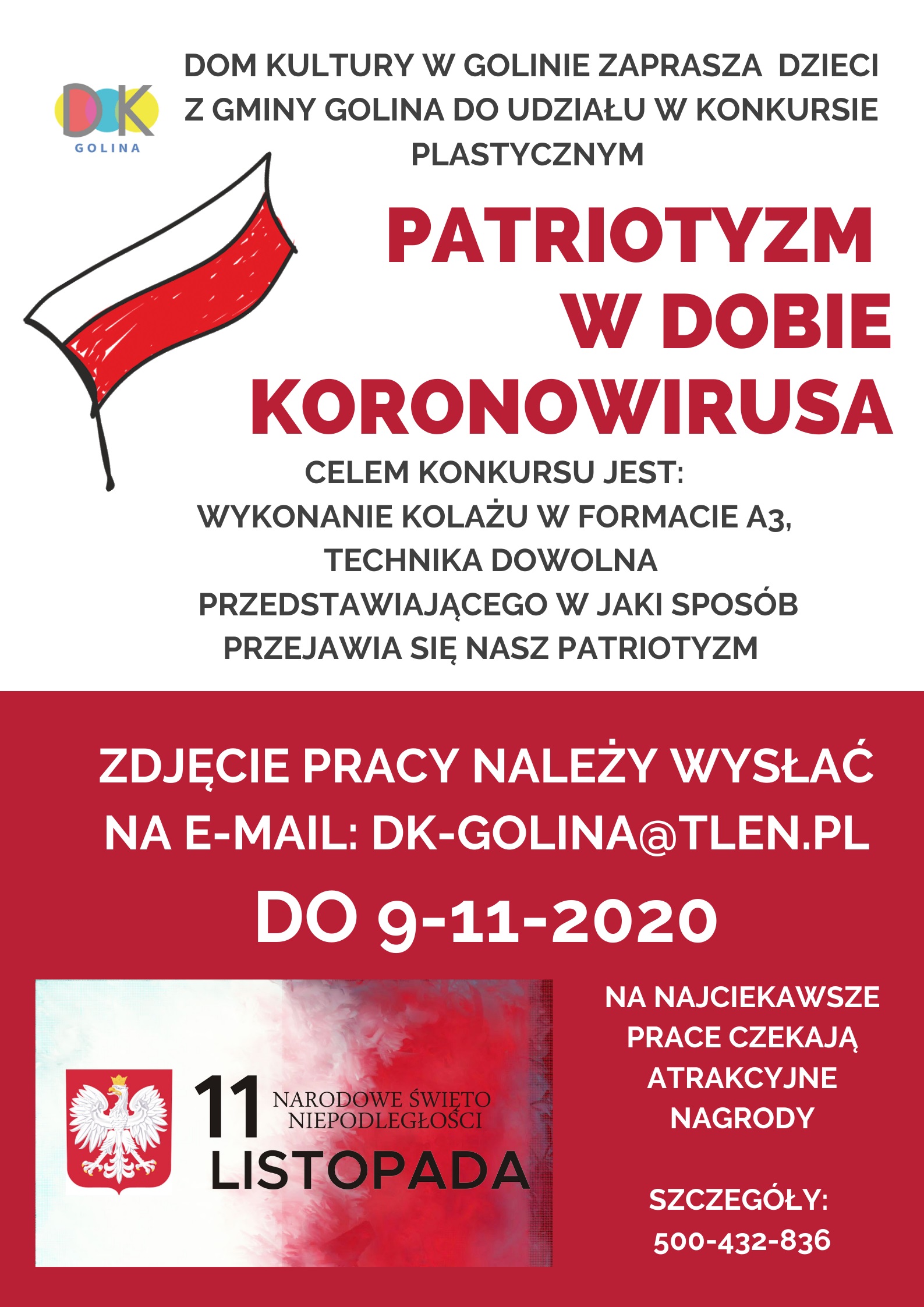 Dom kultury w Golinie zaprasza wszystkie dzieci z Gminy Golina do udziału w konkursie plastycznym. Szczegóły na załączonym plakacie.