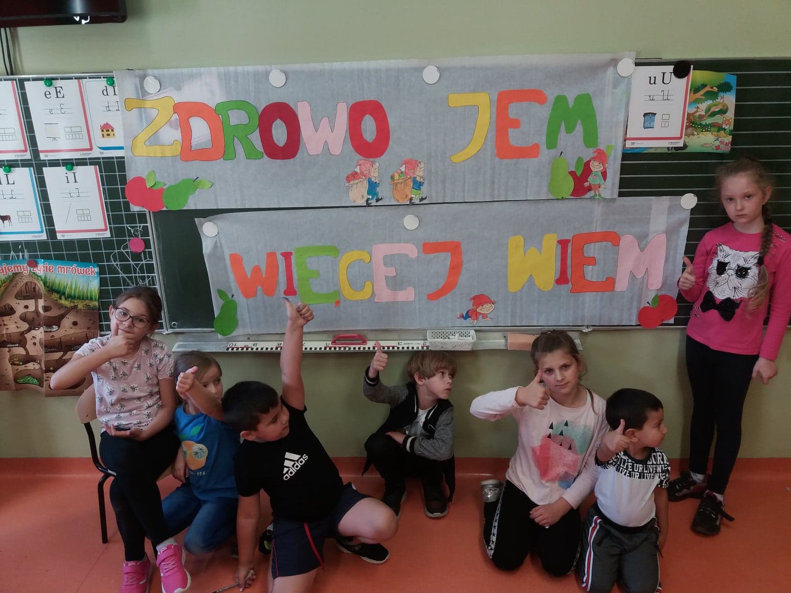 „Zdrowo jem, więcej wiem” skierowany jest do uczniów zerówek i klas I – III szkół podstawowych, ponieważ to właśnie w tym wieku zaczynają się wyrabiać nawyki żywieniowe. Wobec tego warto, żeby te nawyki od razu były prawidłowe, a także pozwalały cieszyć się zdrowiem i długim życiem. Podczas zajęć lekcyjnych nauczyciele realizują zagadnienia dotyczące zdrowego stylu życia, zdrowego odżywiania i aktywności fizycznej. Zajęcia odbywają się w formie krótkich pogadanek i dyskusji, doświadczeń i zabaw, które w prosty sposób przekazują i utrwalają wiedzę naszym uczniom.