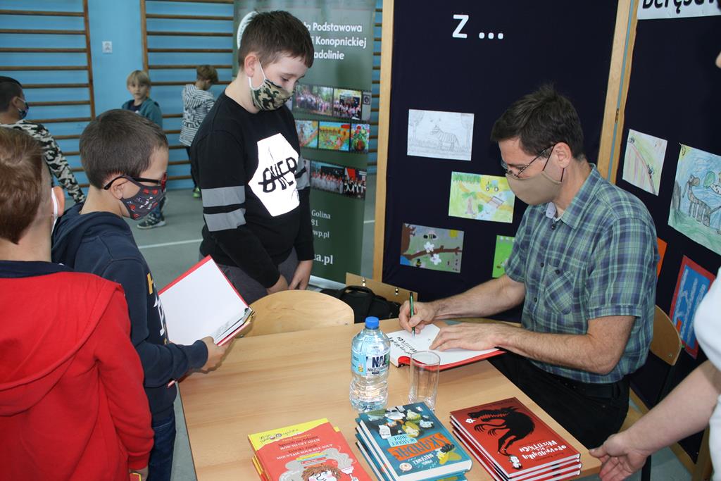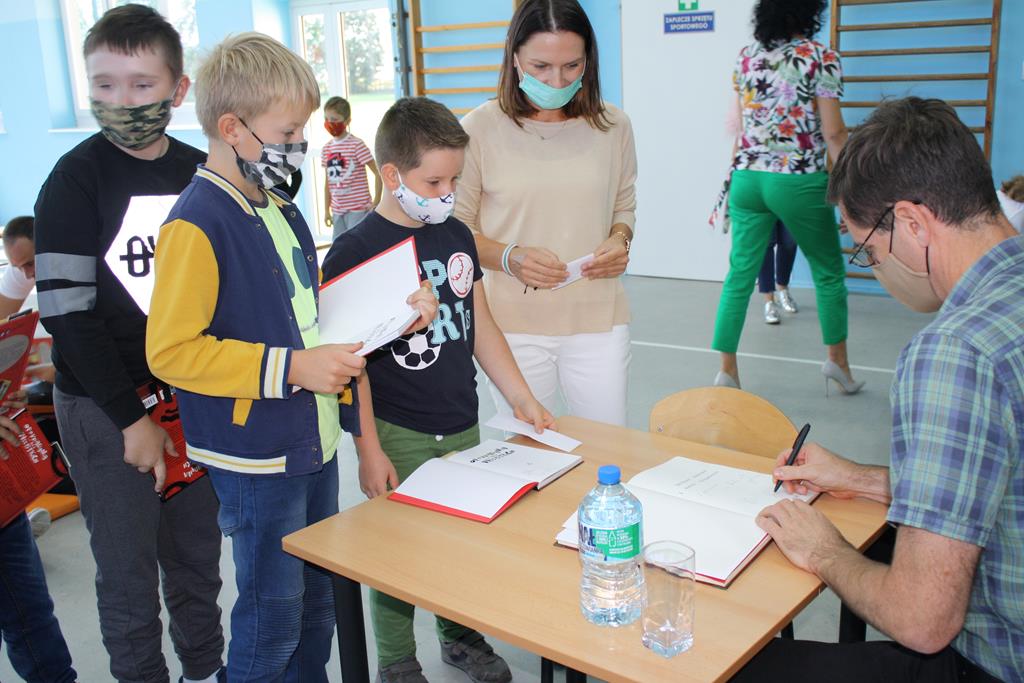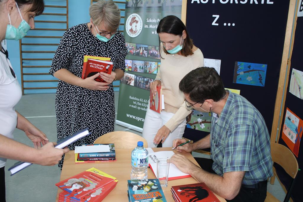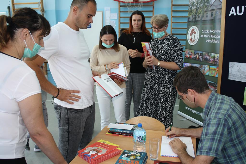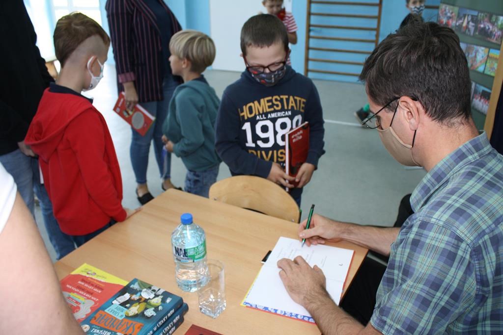 Bibliotek Publiczna w Golinie zaprosiła cenionego i lubianego autora książek dla dzieci i młodzieży Pawła Beręsewicza na spotkanie autorskie, które odbyło się 18 września 2020 r. w Szkole Podstawowej im. Marii Konopnickiej w Radolinie.