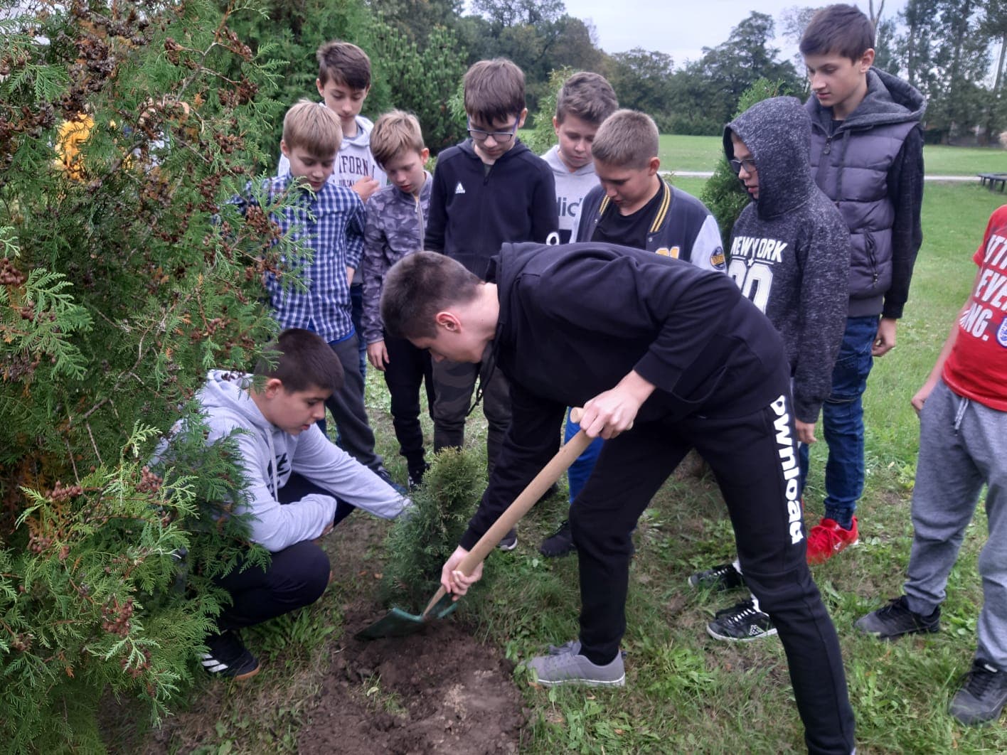 W ramach tego przedsięwzięcia przyłączyliśmy się również do projektu „MIĘDZYPOKOLENIOWO Z EKOLOGIĄ NA WESOŁO” realizowanego przez Stowarzyszenie Razem dla Goliny, współfinansowanego ze środków Starostwa Powiatu Konińskiego. Projekt zakłada zaangażowanie społeczności lokalnej do wspólnej lekcji poszanowania środowiska. Celem jest promowanie nieśmiecenia, edukacja odpadowa oraz inicjowanie działań, dzięki którym zmniejszy się nasz negatywny wpływ na środowisko. Jak wiadomo, drzewa zapewniają nam tlen, oczyszczają powietrze, są domem dla ptaków. Potrzeba ich sadzenia jest ogromna, dlatego też w ramach podsumowania pierwszego etapu projektu "Międzypokoleniowo z ekologią na wesoło" nasi uczniowie wsadzili w szkolnym ogródku symboliczne drzewko, które przekazała Prezes Stowarzyszenia "Razem dla Goliny" Pani Żanetta Matlewska.