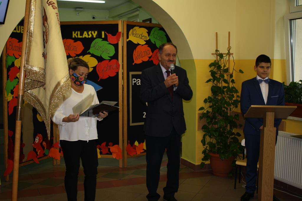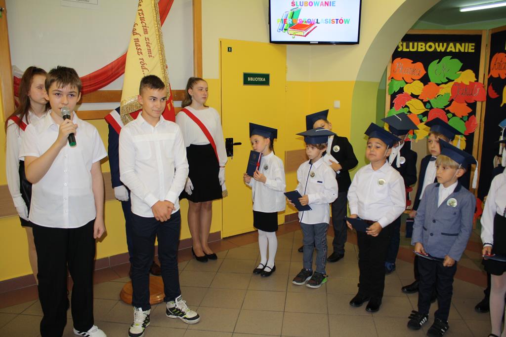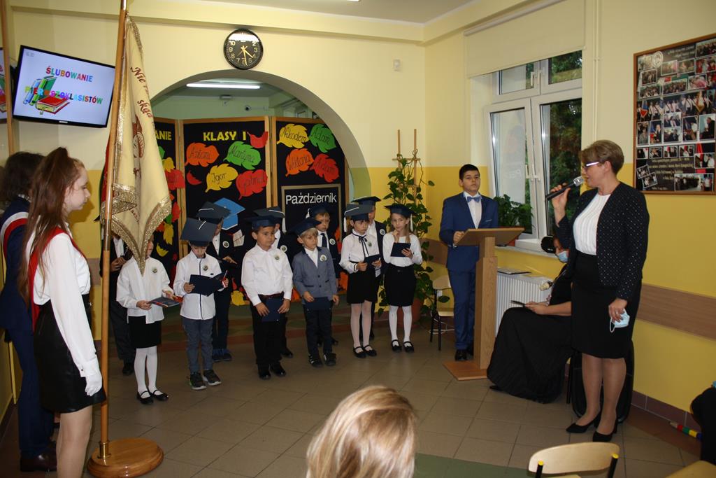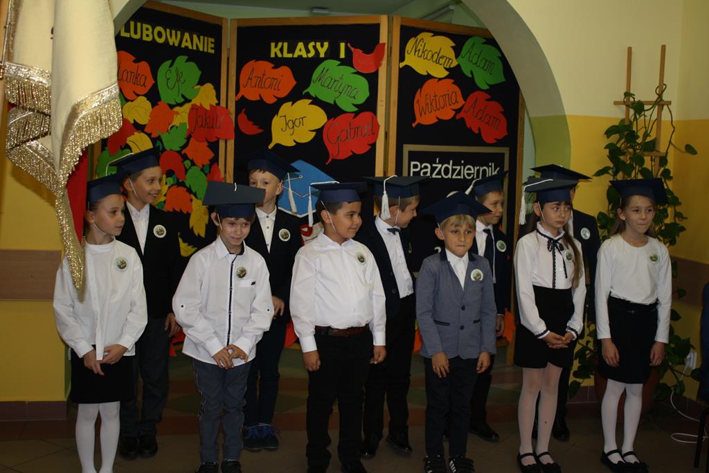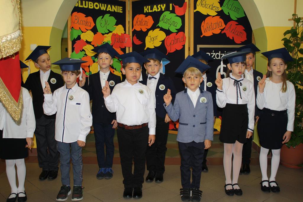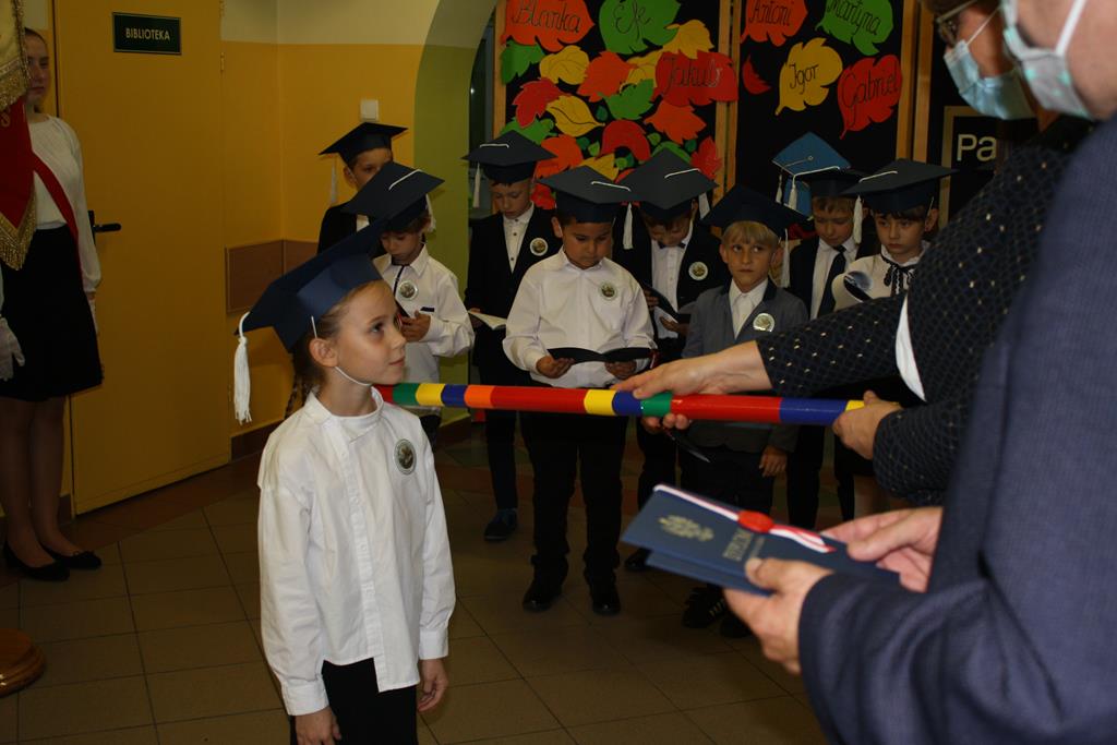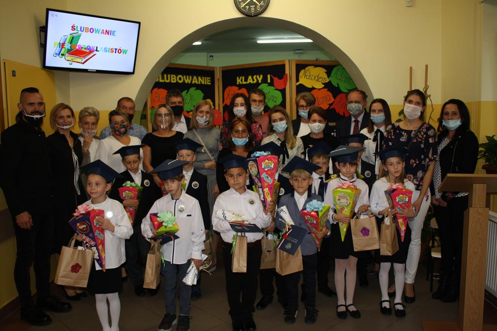 Ślubowanie klas pierwszych to od lat niezwykłe wydarzenie w kalendarzu imprez Szkoły Podstawowej w Radolinie. W tym roku miało ono miejsce 6 października. Był to dzień długo wyczekiwany przez dzieci. Powodem, z pewnością była sama uroczystość, jak również niecodzienność stroju, który mieli założyć tego dnia najmłodsi uczniowie, czyli strój galowy i birety. W tym dniu również odbyło się wręczenie stypendiów za wyniki w nauce za rok 2019/2020. W uroczystości wzięli udział Burmistrz Goliny Mirosław Durczyński, Kierownik Centrum Usług Wspólnych w Golinie p. Emilia Bajdek. Podczas ceremonii 11 pierwszoklasistów, w obecności dyrekcji szkoły, wychowawcy, zaproszonych gości oraz swoich rodziców, złożyli ślubowanie na sztandar szkoły. Następnie dyrektor szkoły dokonał aktu pasowania na ucznia, Burmistrz Goliny i wychowawca wręczyli pamiątkowe dyplomy. Rada Rodziców ofiarowała uczniom słodycze i koszulki z imionami, zaś przedstawiciele klasy najstarszej klasy 8 piórniki z przyborami szkolnymi.