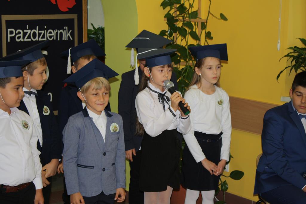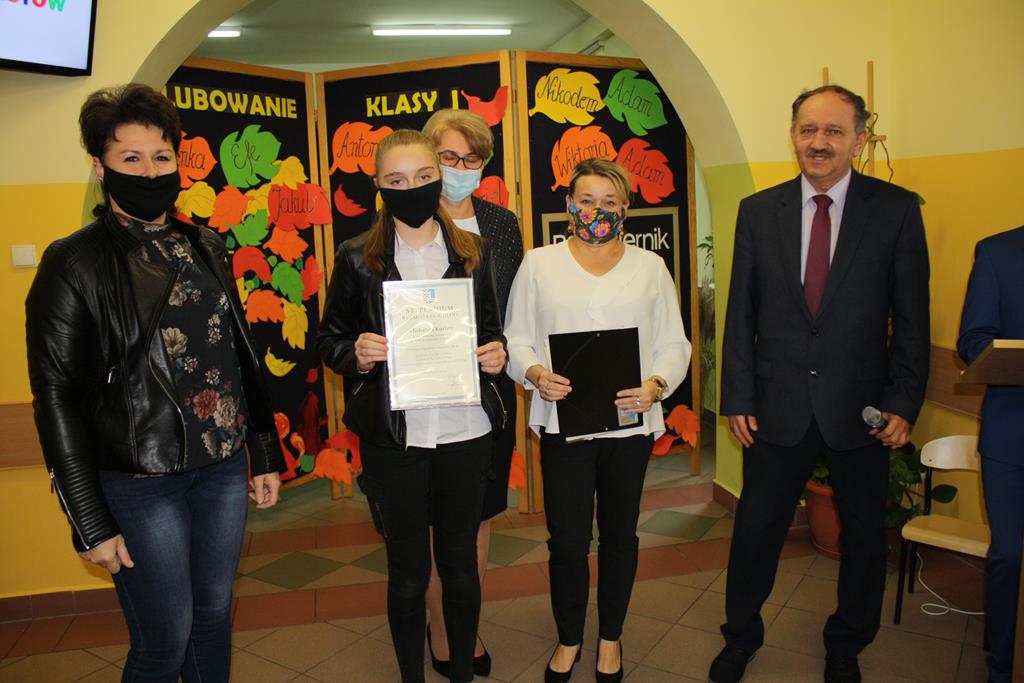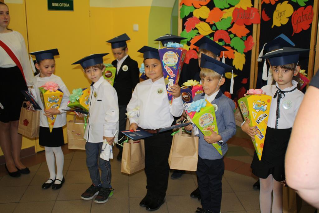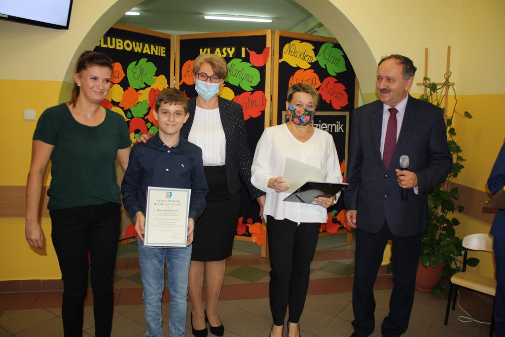 Podczas części artystycznej pierwszaki zaprezentowały swoje talenty wokalne, recytatorskie, wzbudzając aplauz wśród zgromadzonej publiczności. Następnie pierwszaki, rodzice i wychowawca klasy p. Magdalena Lewartowska wykonali pamiątkowe zdjęcia. Wszystkim stypendystom i pierwszoklasistom gratulujemy i życzymy dalszych sukcesów i jak najlepszych wyników w nauce.