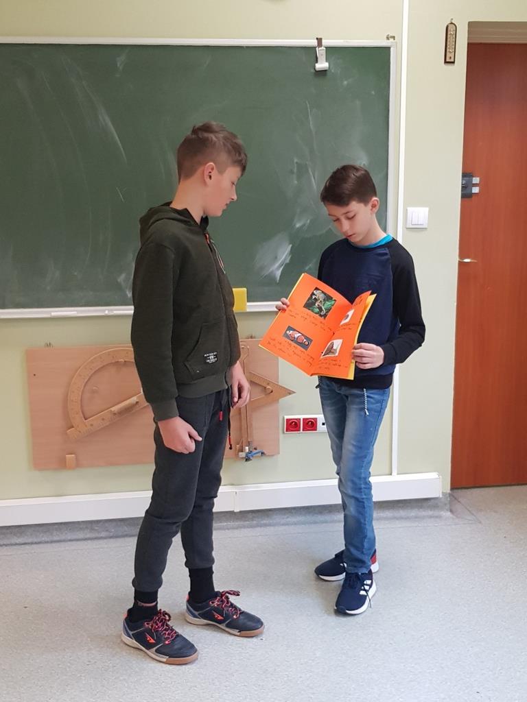 Prace plastyczne zostały zaprezentowane na szkolnym korytarzu, natomiast przygotowane prezentacje wyświetlone na monitorze - również na korytarzu - podczas przerw.