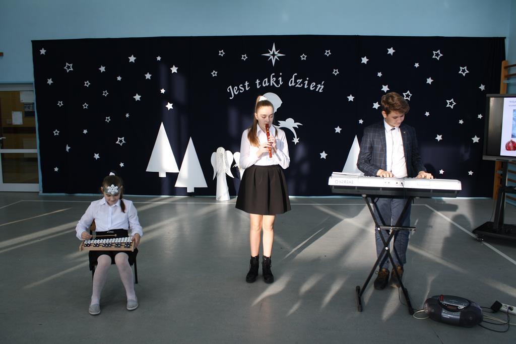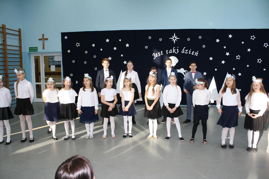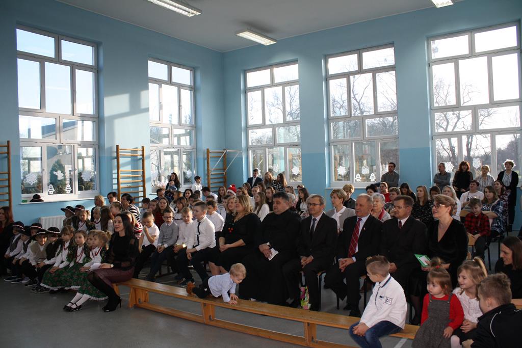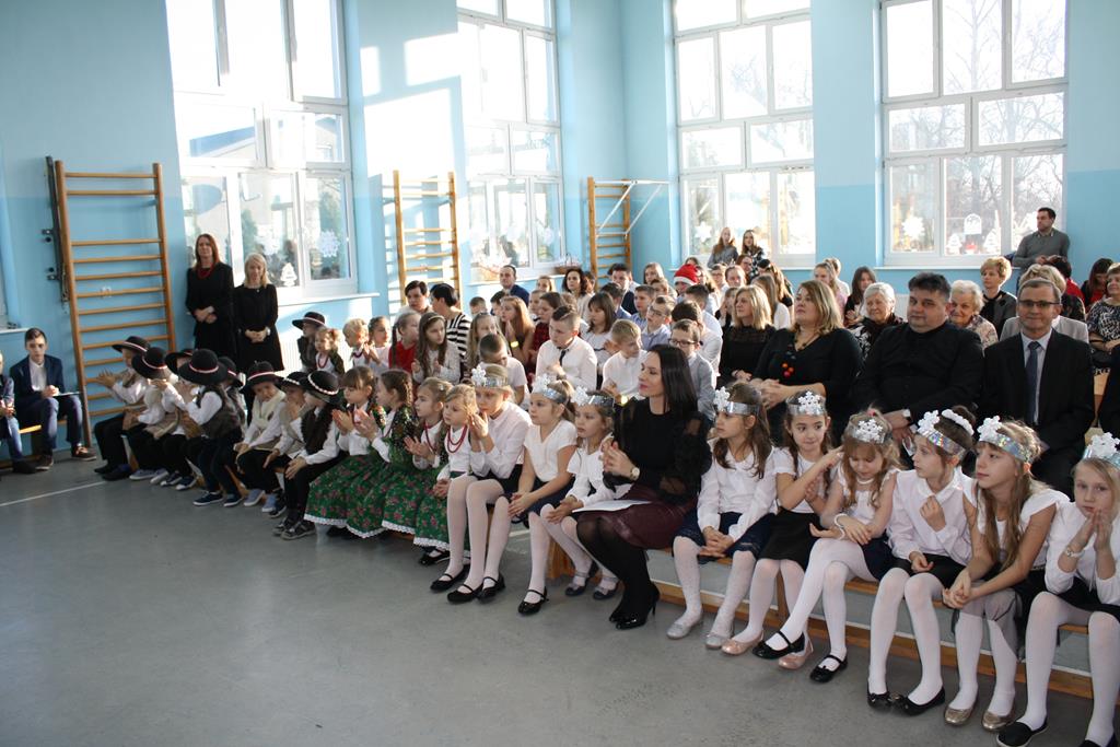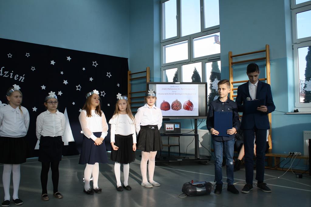 Zgodnie z coroczną tradycją 20 grudnia na auli szkolnej odbyło się spotkanie bożonarodzeniowe. Swoją obecnością zaszczycili nas: ks. Proboszcz Andrzej Czubaszewski, Sekretarz Gminy Golina p. Anna Górzna, Przewodniczący Rady Miasta p. Wojciech Wojdyński , Radni p. Kazimierz Substelny i p. Krzysztof Szymański. Nie zabrakło również emerytowanych pracowników szkoły i rodziców. Gospodarze i goście wysłuchali montażu słowno – muzycznego ,, Jest taki dzień ’’, na którzy składały się wiersze oraz tradycyjne kolędy. Został on przygotowany przez koło aktorskie i muzyczne pod opieką p. Magdaleny Lewartowskiej i Agnieszki Waliniak. Natomiast grupy przedszkolne pod opieką p. Emilii Napierały i Agnieszki Kołodziejczak zaśpiewały pastorałki ubrani w przepiękne góralskie stroje. Pani Dyrektor Alina Kozłowska przekazała wszystkim uczniom, nauczycielom i rodzicom życzenia świąteczne i noworoczne.