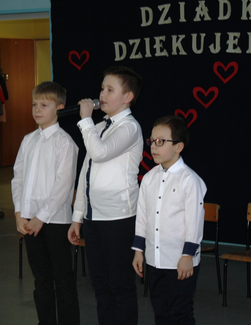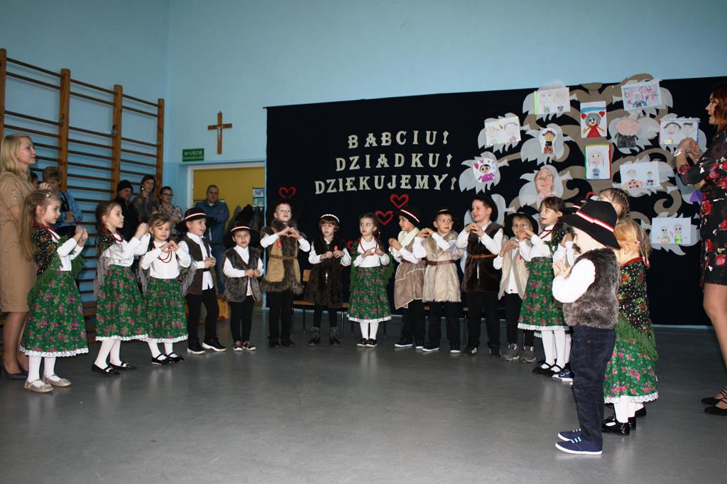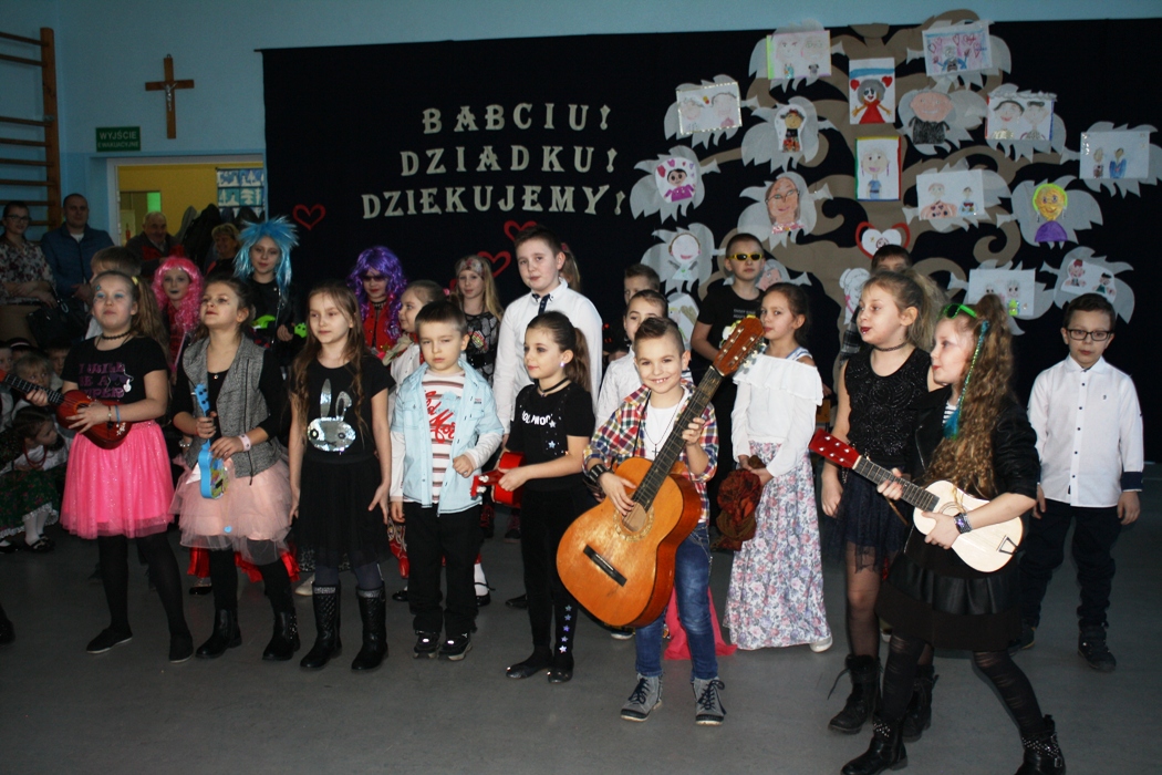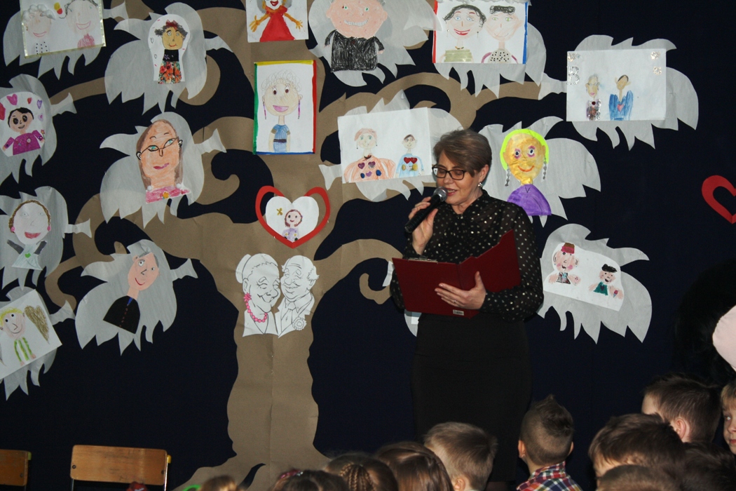 W dniu 21.01.2020 r. w naszej szkole odbyła się uroczystość z okazji Dnia Babci i Dziadka. Pani Dyrektor Alina Kozłowska przywitała wszystkich przybyłych gości ciepłymi słowami. Podkreśliła jak dużą rolę Babcie i Dziadkowie spełniają w życiu swoich wnuczek i wnuków. Złożyła wszystkim gościom również najserdeczniejsze życzenia.. Natomiast chłopcy z klasy II w imieniu wszystkich wnuków przywitali uczestników spotkania i zaprosili na program słowno-muzyczny w wykonaniu grup przedszkolnych oraz uczniów klas I-III.