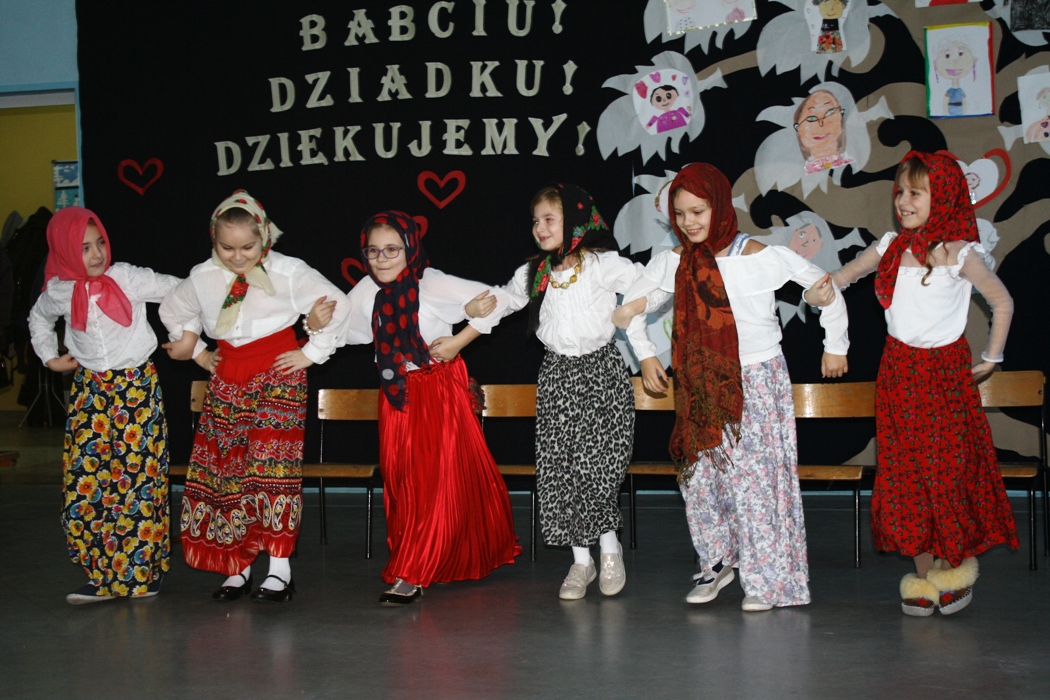Najpierw grupy przedszkolne pod opieką p. Emilii Napierały i Agnieszki Kołodziejczak zaśpiewały piosenkę pt. „Czacza dla Babci i Dziadka”. Potem uczniowie klasy I przygotowani przez p.Agnieszkę Waliniak zaprezentowali wiersze. Z kolei dziewczynki z klasy II pod opieką p. Barbary Jarońskiej przygotowały taniec „Babuszki staruszki”. Po nich uczniowie z klasy III pod kierunkiem p. Magdaleny Lewartowskiej zaprezentowali wiersze, oraz złożyli życzenia i podziękowania dla babć oraz dziadków. Na zakończenie programu artystycznego wszyscy uczniowie klas I-III zaśpiewali piosenkę pt. „Odlotowa babcia”, po czym dzieci obdarowały swoich wyjątkowych gości wykonanymi samodzielnie upominkami. W dalszej części uroczystości babcie i dziadkowie zostali zaproszeni na słodki poczęstunek. Spotkanie upłynęło w miłej i serdecznej atmosferze.