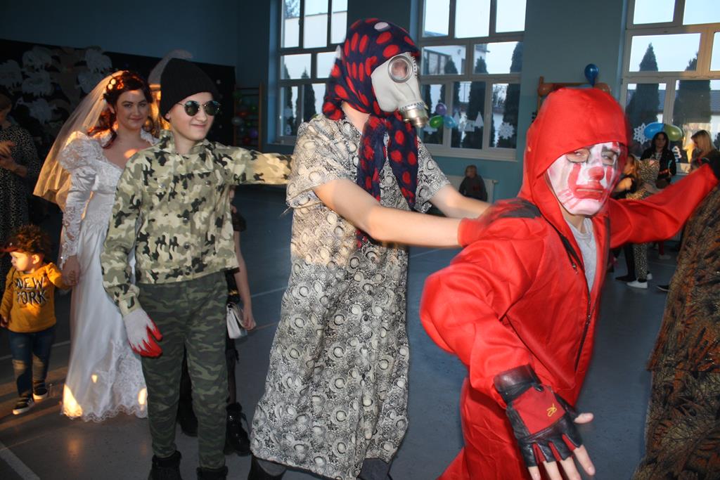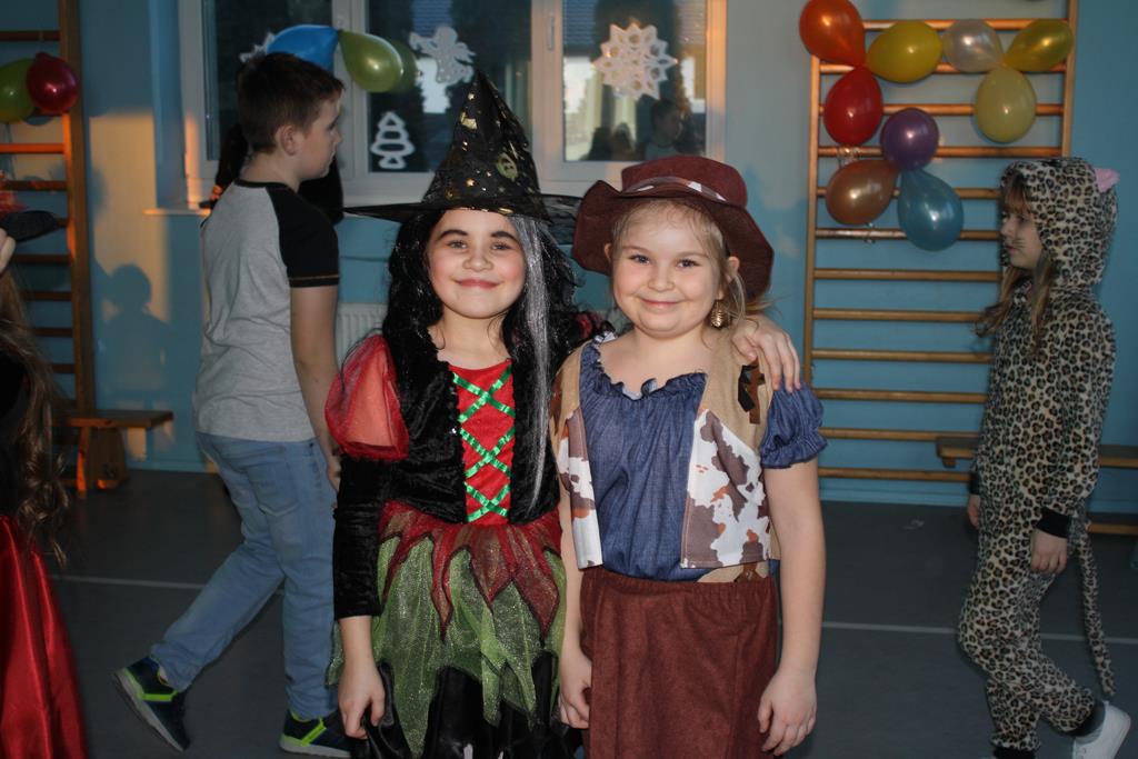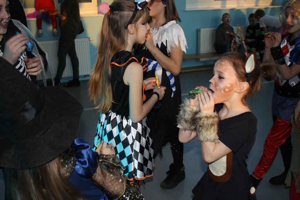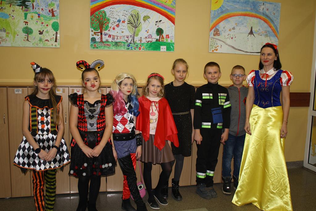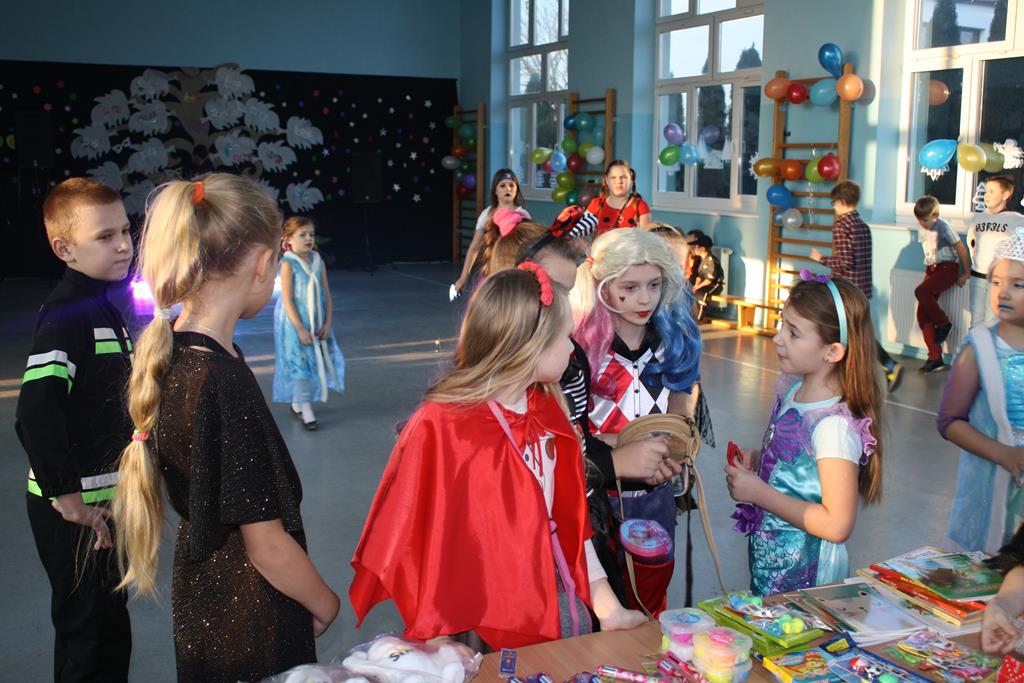 W kolorowej scenerii zabawę karnawałową poprowadził DJ Michał Kuminkiewicz – grając największe hity, przy których bawili się uczniowie, rodzice i nauczyciele. Dodatkową atrakcją były konkursy, które dostarczyły dzieciom mnóstwa radości. Można było również kupić losy w loterii fantowej i wygrać ciekawy gadżet, a także skorzystać z zakupów w sklepiku szkolnym przygotowanym specjalnie na tę okazję przez Samorząd Uczniowski. Na naszym balu nie zabrakło księżniczek, czarownic, piratów, policjantów, bohaterów bajek i filmów, a nawet panny młodej – uczniowie nie zawiedli w swej pomysłowości na przebranie karnawałowe. Tańce przy muzyce przerywał krótki odpoczynek na poczęstunek w salach lekcyjnych, który został zorganizowany przez Radę Rodziców.