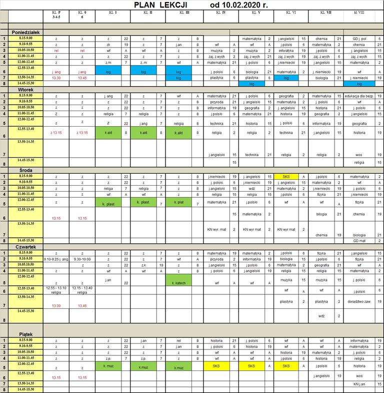 W dzienniku elektronicznym został zamieszczony plan lekcji na II półrocze roku szkolnego 2019/2020 z drobnymi zmianami. Prosimy o zapoznanie się.