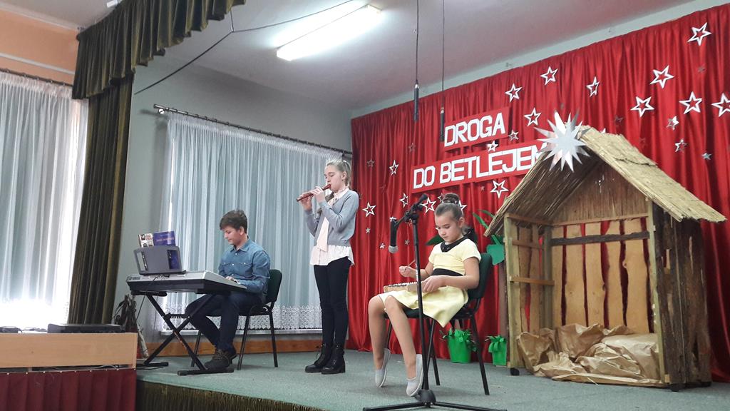 14 grudnia 2019r. uczniowie naszej szkoły wzięli udział w Gminnym Przeglądzie Twórczości Bożonarodzeniowej- Konkursie Śpiewania Kolęd, zorganizowanym przez Dom Kultury w Golinie. W kategorii klas I- III naszą szkołę reprezentowała Zuzanna Kurleto z utworem wokalnym pt. „Bosy pastuszek”. Starsza grupa: Michalina Kurleto (kl. VI) i Krzysztof Hinz (kl. VIII) wraz z Zuzią przedstawiła instrumentalną wersję międzynarodowej kolędy „Cicha noc”. Za swoją grę na instrumentach w dwugłosie trio otrzymało wyróżnienie otrzymując nagrody rzeczowe.