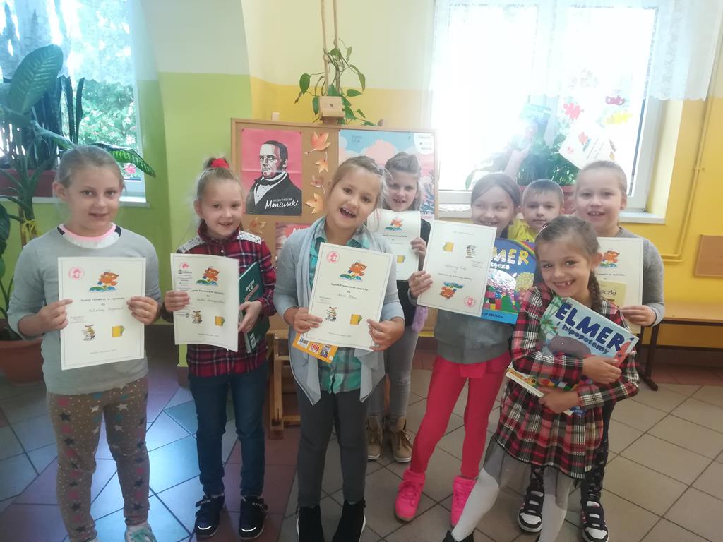 W piątek 13 września odbyło się Pasowanie na czytelnika uczniów klasy 1. W tym roku do grona czytelników dołączyła 9 uczniów, która odwiedziła mury biblioteki szkolnej. Bibliotekarz p. Magdalena Lewartowska zaprosiła uczniów do obejrzenia księgozbioru, zapoznała uczniów z regulaminem. Uczniowie otrzymali karty biblioteczne, na które wypożyczyli swoje pierwsze książki. Wszyscy zaciekawieni byli ilością książek z różnych dziedzin nauki oraz sposobem zapisu książek w specjalnych księgach inwentarzowych. Pierwszoklasiści otrzymali zakładki do swoich książek oraz pamiątkowe dyplomy. Najmłodszym czytelnikom życzymy ciekawych lektur i niezapomnianych przygód z książką.