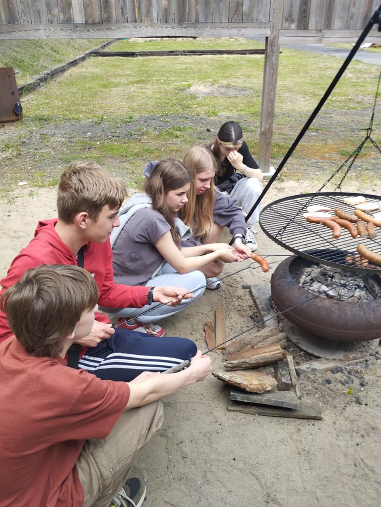 Po części strzeleckiej przyszedł czas na chwilę relaksu przy ognisku. Uczniowie piekli kiełbaski, dzielili się wrażeniami i wspólnie spędzali czas na świeżym powietrzu. Atmosfera była bardzo przyjazna, a pogoda dopisała, co sprawiło, że wyjazd był jeszcze bardziej udany.