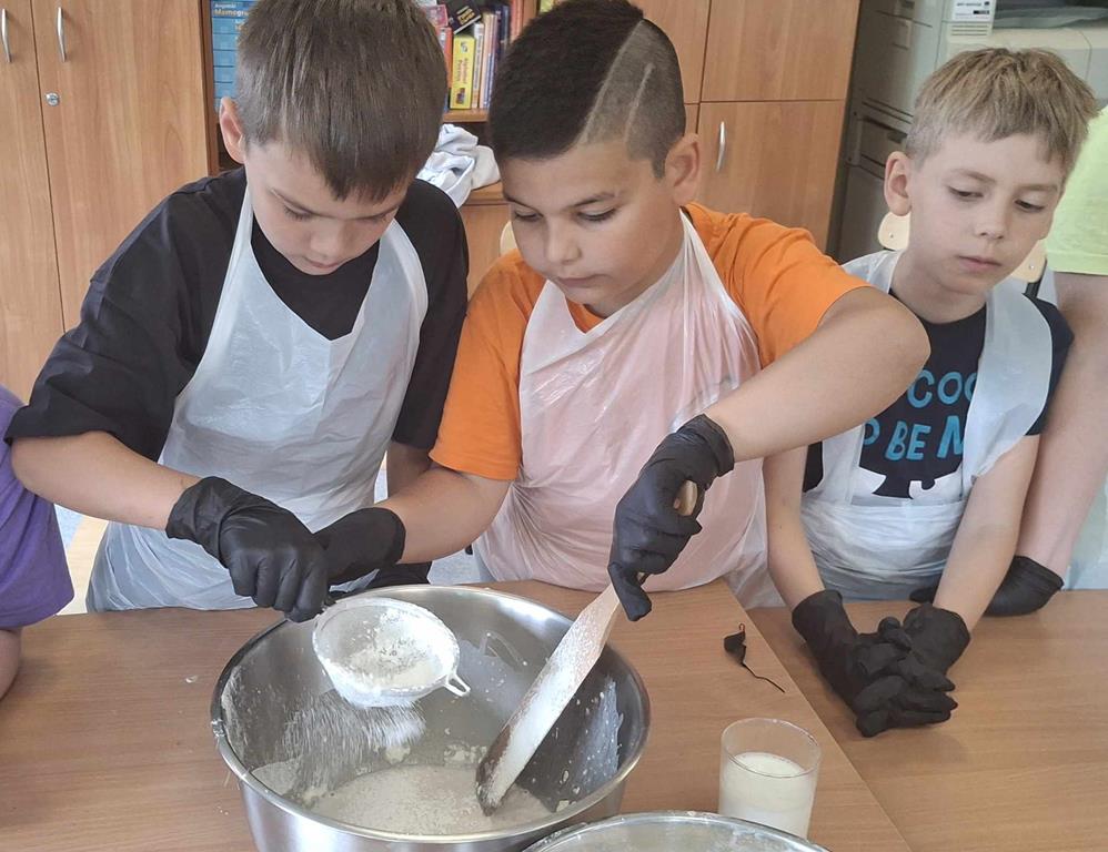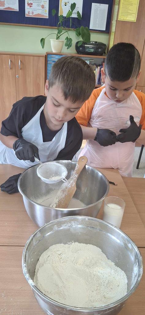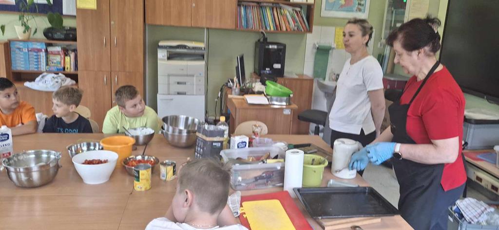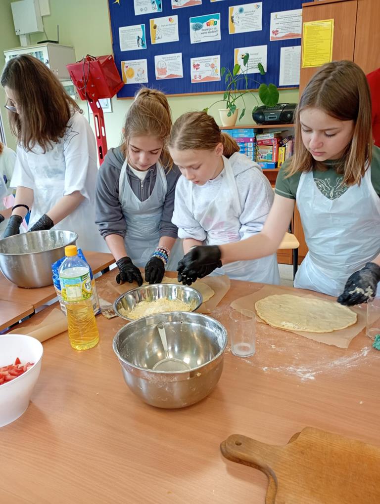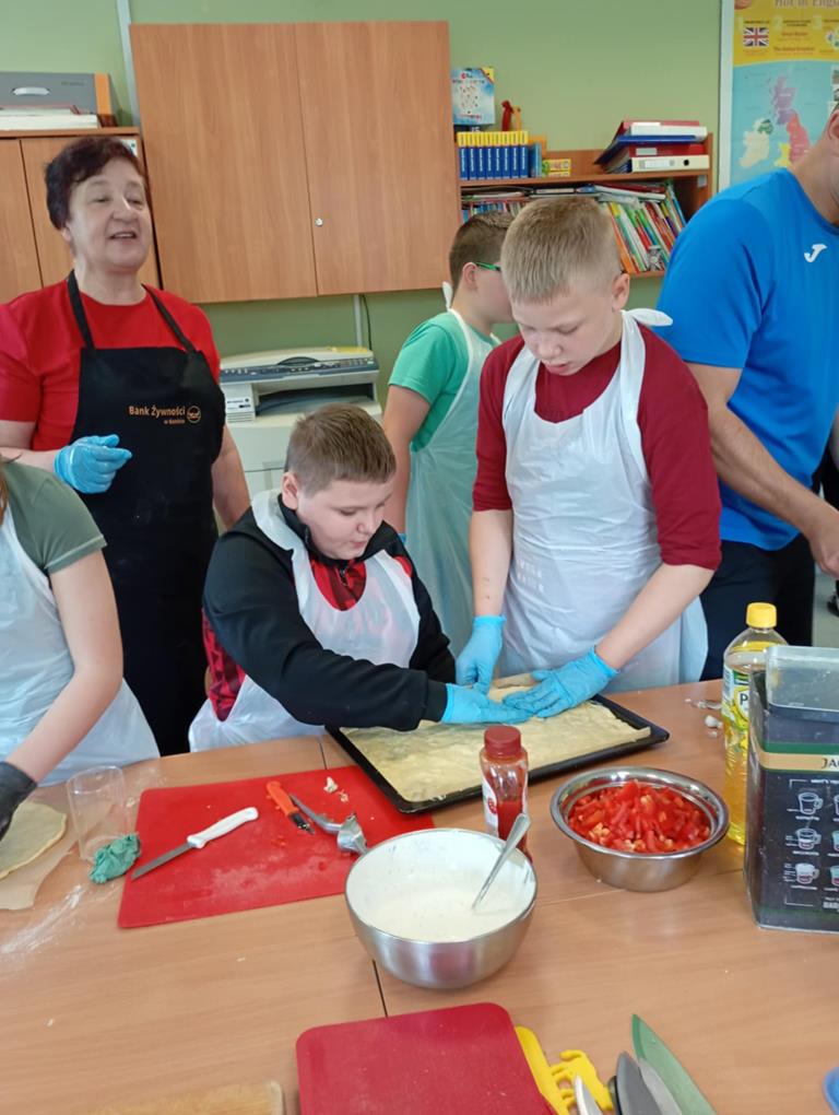 Uczniowie, pod okiem pań z Banku Żywności: pani Joanny Piekarczyk i pani Bożeny Palpuchowskiej przygotowywali pizzerki z wykorzystaniem podstawowych produktów spożywczych. Celem warsztatów było pokazanie, że nawet z prostych składników można przygotować smaczny i pożywny posiłek.
