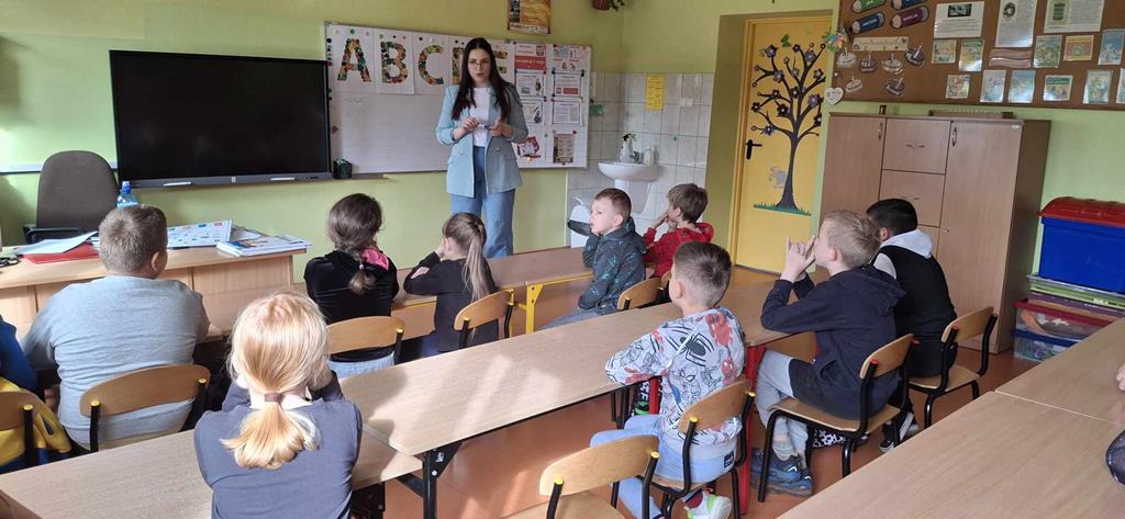 W naszej szkole odbyły się warsztaty edukacyjne dla uczniów klas I – V z Krajowego Ośrodka Wsparcia Rolnictwa (KOWR) w ramach unijnego „Programu dla szkół”: „Owoce i warzywa w szkole”, które przeprowadziła pani Klaudia Wojciechowska. Celem tych warsztatów jest promowanie zdrowego odżywiania oraz zwiększenie świadomości dzieci na temat pochodzenia żywności i niemarnowania jedzenia.