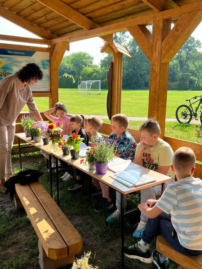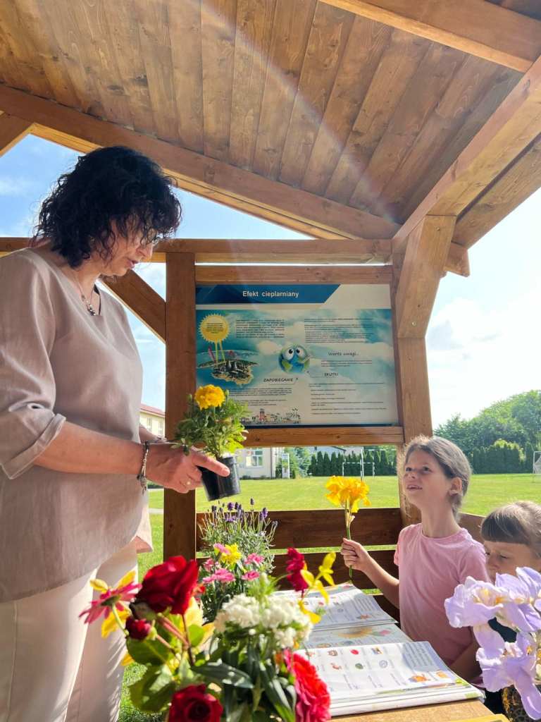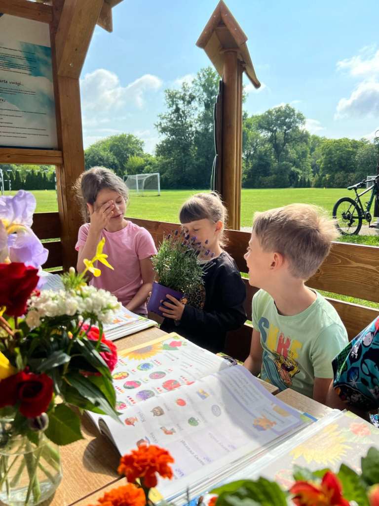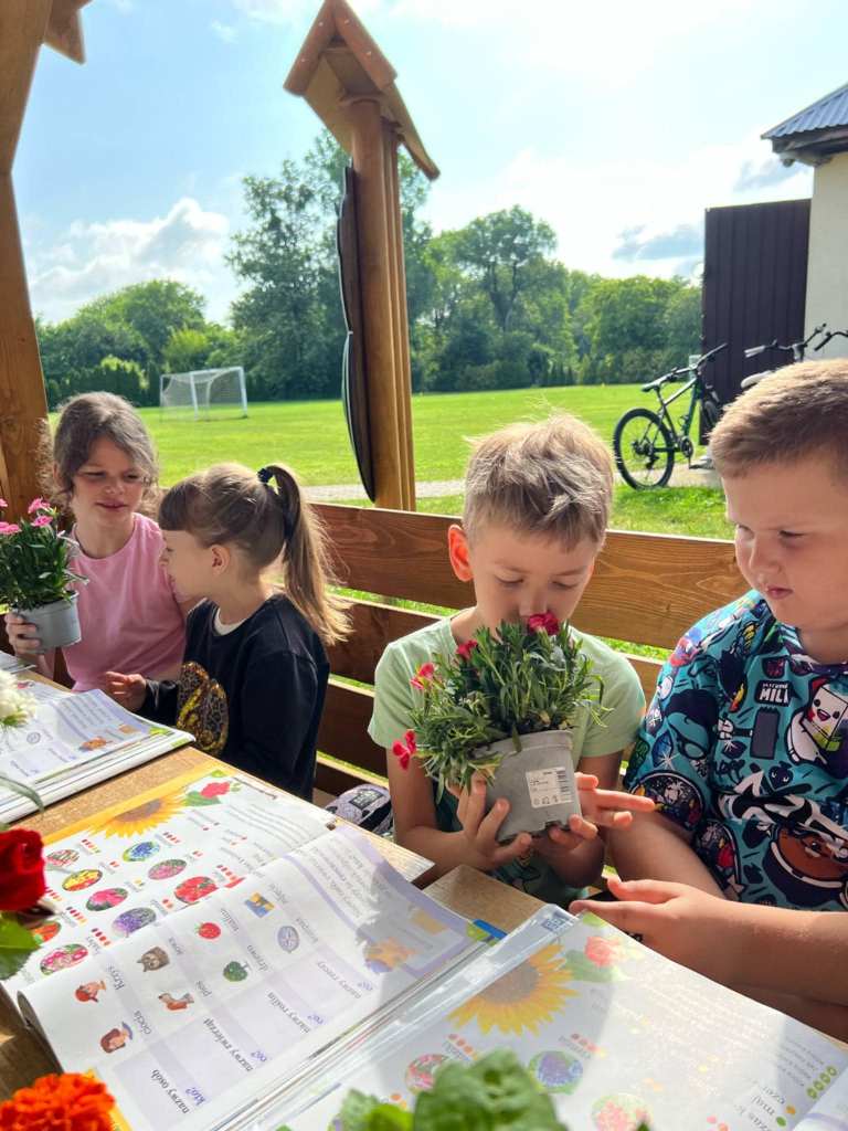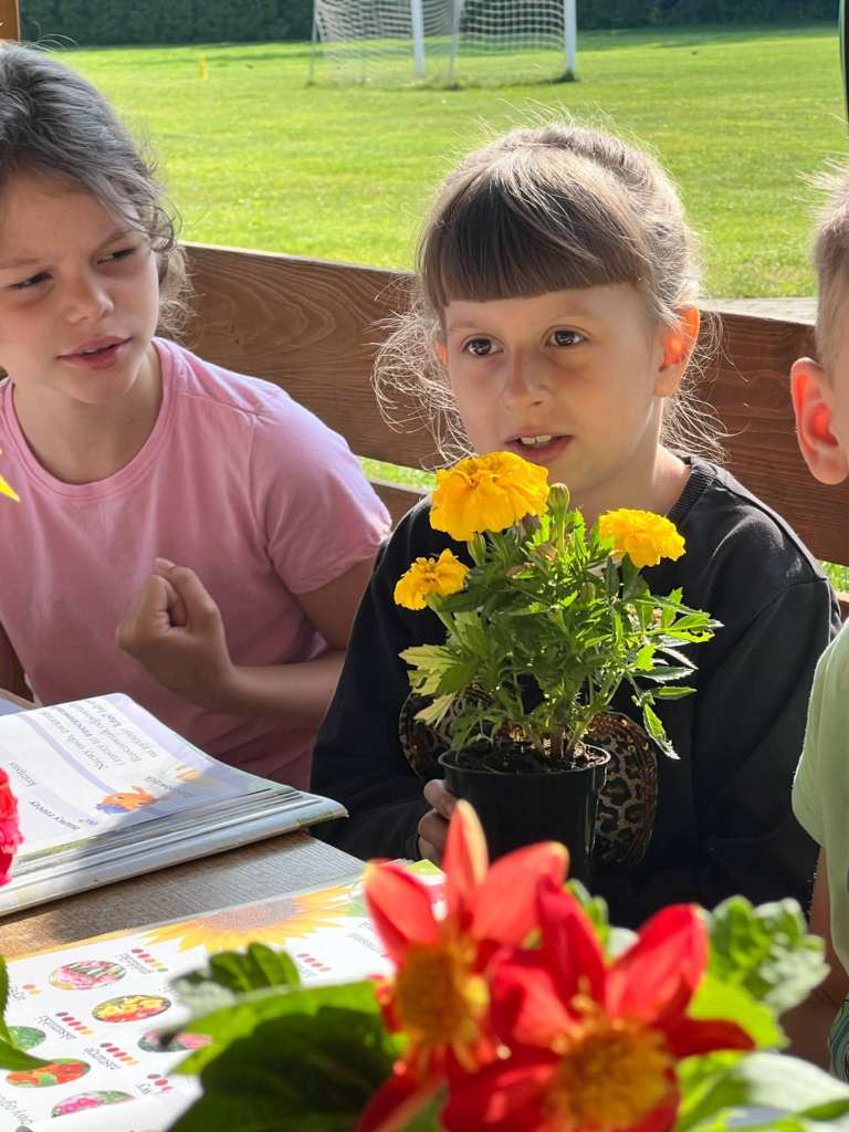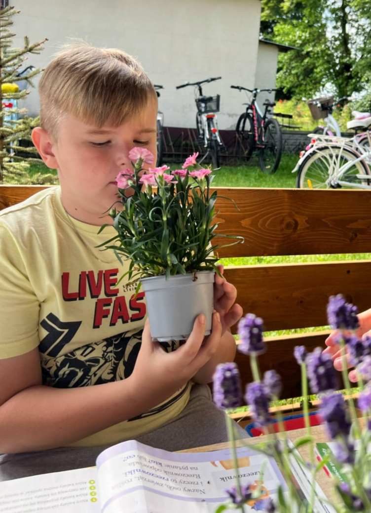 O tym jakie kwiaty spotykamy w naszych ogrodach, czego do życia potrzebują rośliny, jak należy je pielęgnować i co warto uwzględnić podczas dobierania roślin, aby osiągnąć harmonijną i efektowną kompozycję, dowiedzieli się dzisiaj uczniowie klasy pierwszej podczas zajęć na świeżym powietrzu. Wykorzystując na lekcji naszą wiatę z projektu „ Ścieżki przyrodniczej” dzieci uczyły się, czym należy się kierować wybierając kwiaty do posadzenia na klombie, rabacie, tarasie czy skalniku, jak wykorzystać Internet, aby odszukać nazwę interesującej nas rośliny i dowiedzieć się, czy lubi ona rosnąć w pełnym słońcu, a może w cieniu, porównywały, w jakich miesiącach możemy cieszyć się ich pięknymi barwami. Dzięki prezentowanym na lekcji kwiatom dzieci mogły bliżej poznać roślinki, dotknąć ich, powąchać i porównać ze zdjęciem w podręcznikach. Było kolorowo i pachnąco :)