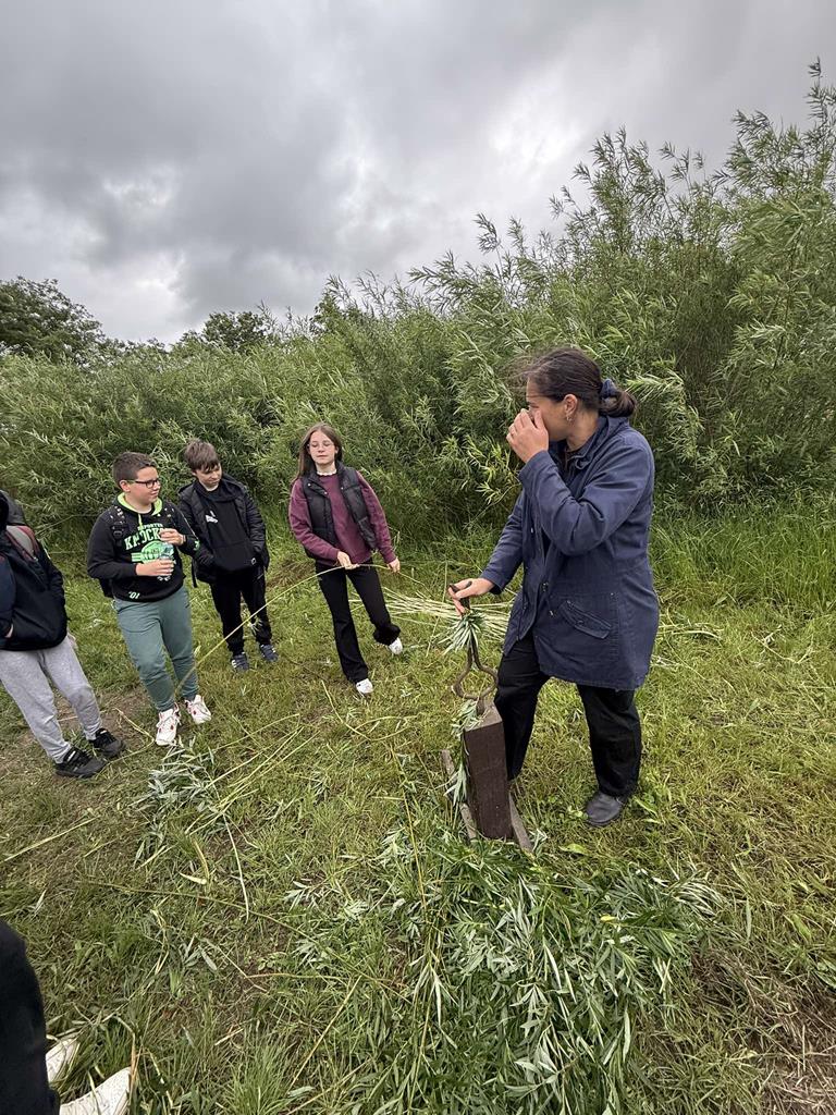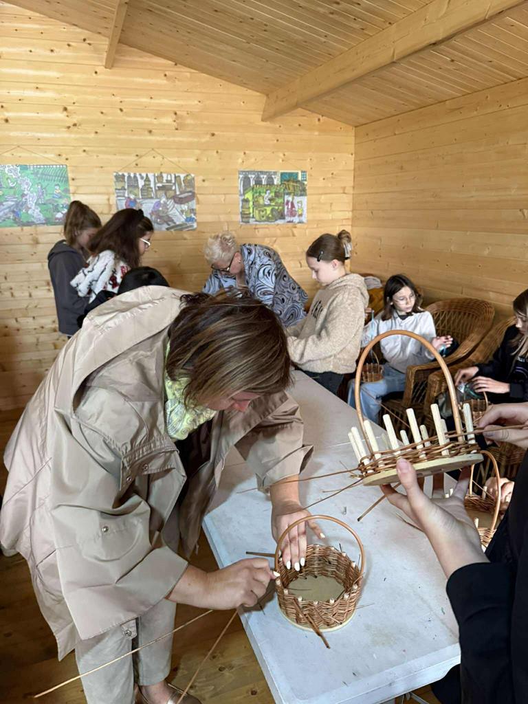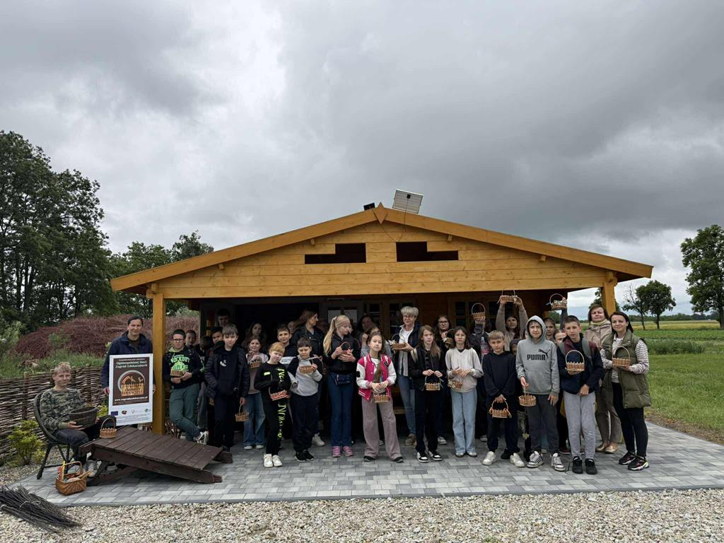 W ramach realizacji projektu „Wyprawy terenowe z Etnoekipą” dofinansowanego przez Narodowy Instytut Kultury i Dziedzictwa Wsi 11 czerwca 2025 r. odbyły się warsztaty edukacyjne w Zagrodzie Wikliniarsko-Plecionkarskiej w Chrustach, gmina Golina. Podczas warsztatów uczniowie zapoznali się ze sposobem uprawy, przygotowaniem wikliny oraz jej wykorzystaniem do wyrobów plecionkarskich. Wizyta w zagrodzie edukacyjnej – gospodarstwie wikliniarskim połączona była z warsztatami plecionkarskimi. Uczestnicy pod okiem doświadczonego instruktora samodzielnie wykonały pamiątkowe koszyczki wiklinowe. Zajęcia były doskonałą okazją, aby zapoznać się jednym z najstarszych rzemiosł jakim jest sztuka wyplatania z wikliny. Uczniowie wrócili z warsztatów zadowoleni, pełni pozytywnych wrażeń i dumni ze swoich własnoręcznie wykonanych koszyczków.