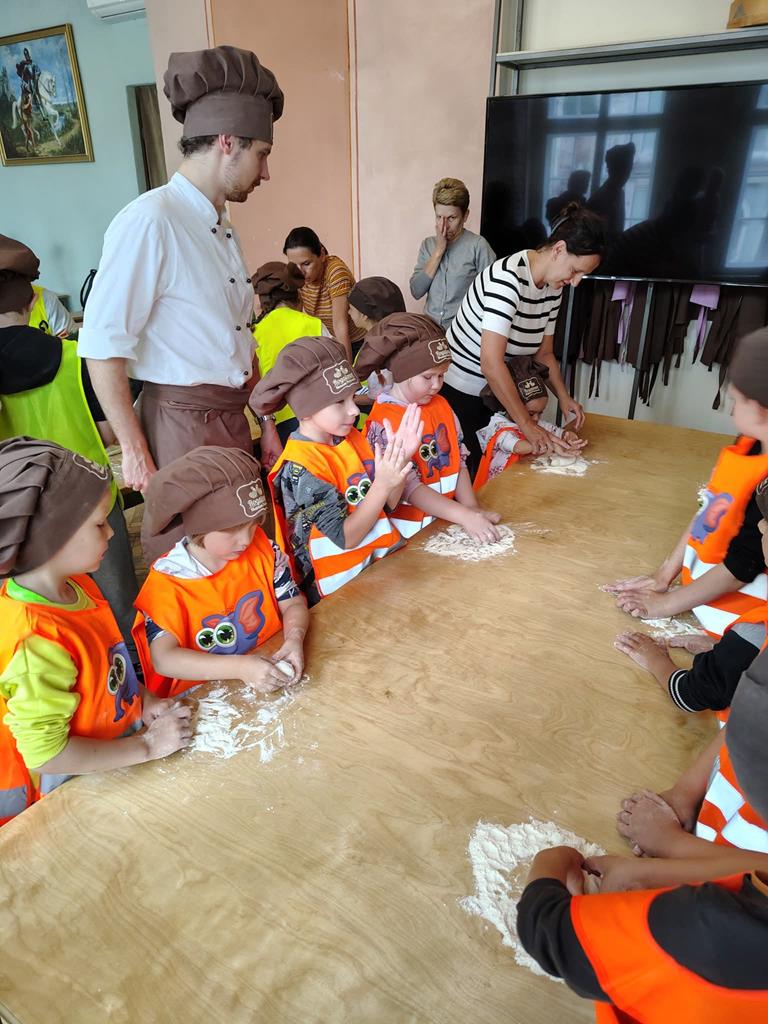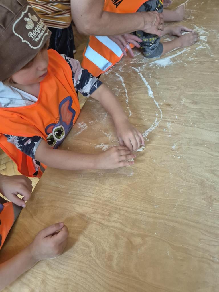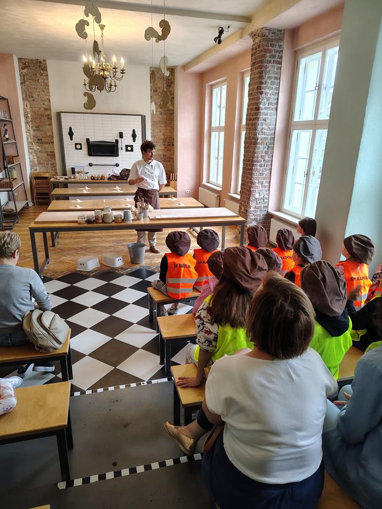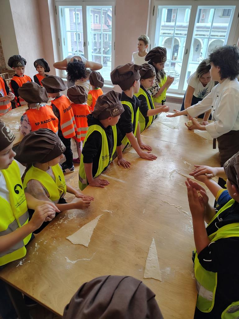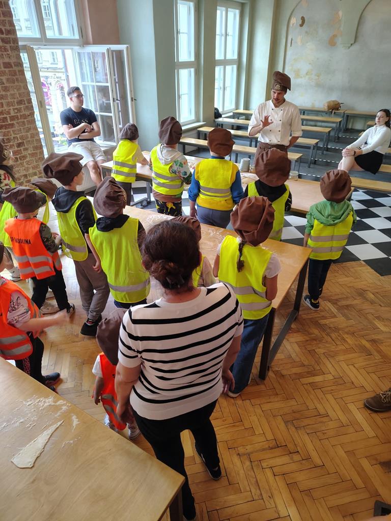 Pierwszym przystankiem było Rogalowe Muzeum Poznania, gdzie poznaliśmy historię słynnych rogali świętomarcińskich i mieliśmy okazję zobaczyć, jak są przygotowywane. Nie zabrakło też zabawnych opowieści o poznańskiej gwarze i lokalnych zwyczajach. Pokaz był nie tylko ciekawy, ale też pełen humoru – wszyscy świetnie się bawili!