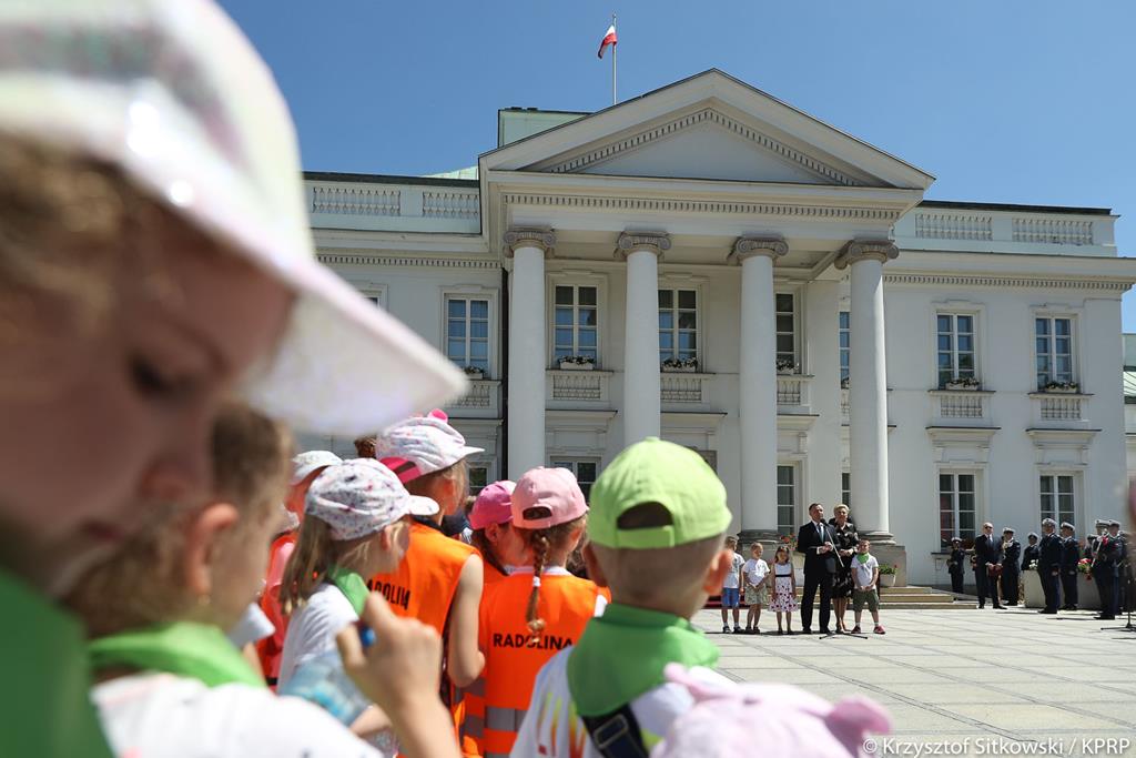 Po ceremonii wręczenia medali, dzieci zgromadzone na placu przed Belwederem, zaśpiewały Parze Prezydenckiej piosenkę o numerach alarmowych przygotowaną przez Komendę Powiatową PSP w Pleszewie. Wszyscy uczestnicy pikniku zostali zaproszeni do wspólnego zdjęcia.