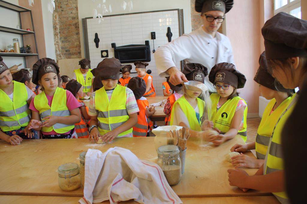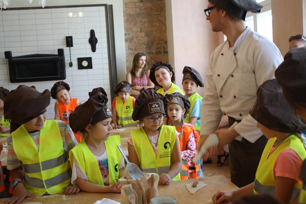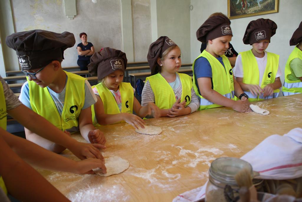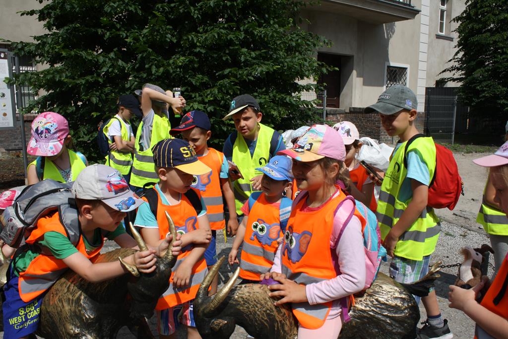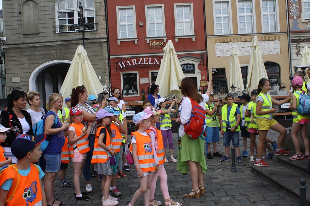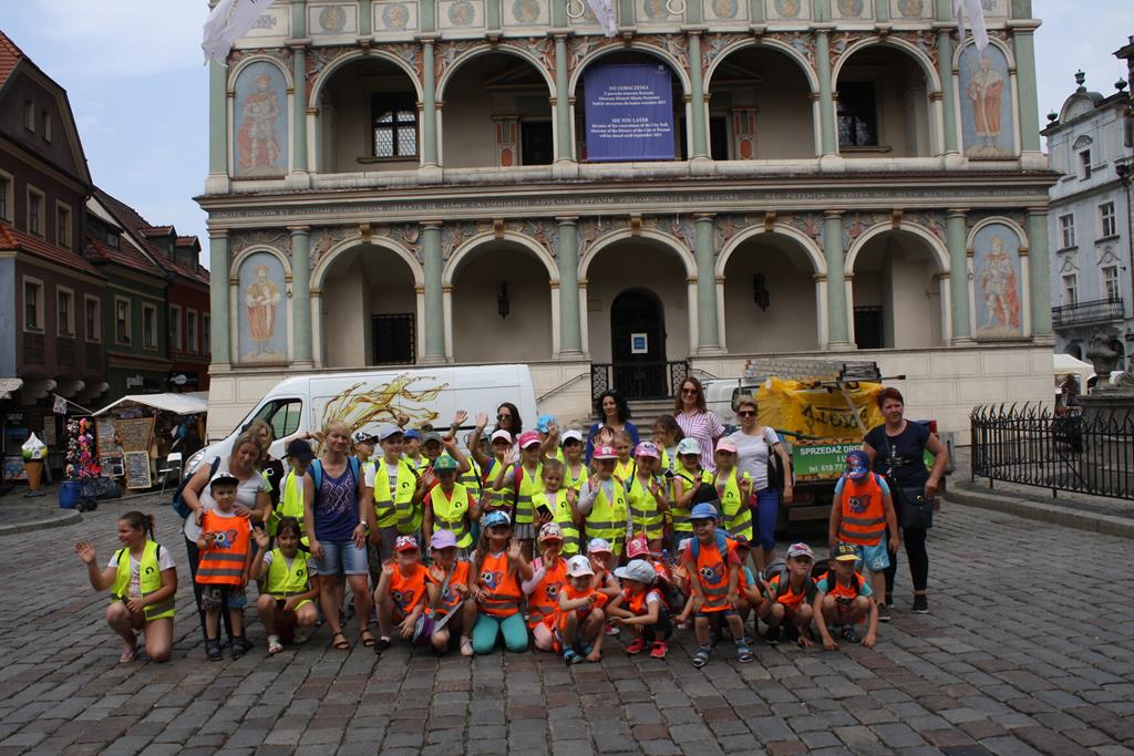 10 czerwca b.r. przedszkolaki i uczniowie klas I- IV wraz z opiekunami aktywnie poznawali niektóre z atrakcyjnych miejsc Poznania. Zaczęli od spaceru po Starym Rynku i obejrzenia najważniejszych tam punktów: ratusza, pomników, fontann, kamieniczek oraz kościoła farnego. Dzieci poznały również legendę o poznańskich koziołkach. Swoją wędrówkę po Starówce zakończyły w Muzeum Rogala Marcińskiego, gdzie wysłuchały krótkiej historii słodkiego wypieku. Mogły także na własne uszy usłyszeć gwarę poznańską i nauczyć się niektórych podstawowych słów, niektórym zresztą dobrze znanych. Dzieci poznały recepturę prawdziwego rogala marcińskiego, a nawet mogły samodzielnie go wykonać wcielając się w rolę cukiernika. Nie obyło się bez wspólnej degustacji. Każdy uczestnik za swoją pracę otrzymał Certyfikat Rogalowego Czeladnika. Zwieńczeniem pobytu na rynku było wysłuchanie w samo południe hejnału z wieży ratusza i obejrzenie z okien muzeum legendarnych „trykających” się koziołków.