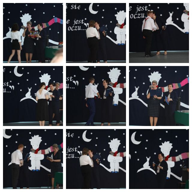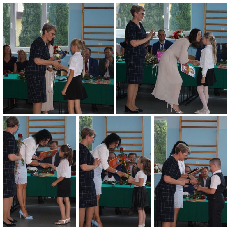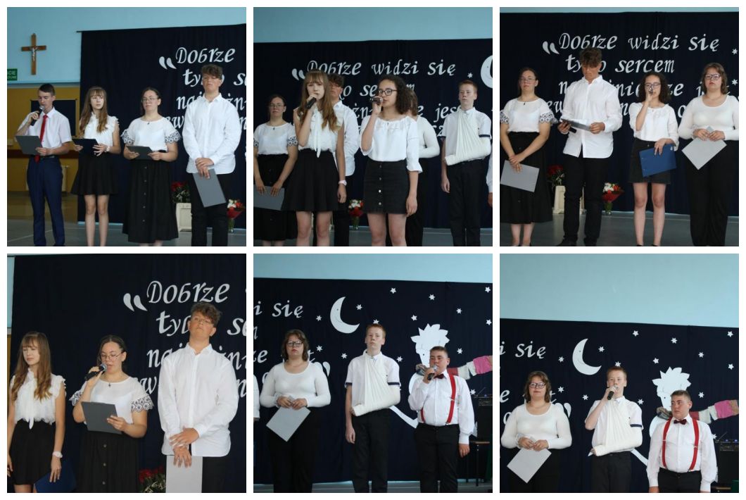 Ósmoklasiści wraz z wychowawczynią, panią Joanną Kryszak, przygotowali krótką część artystyczną. Na uroczystości zakończenia roku szkolnego i pożegnania absolwentów nie zabrakło ciepłych słów pod adresem uczniów, nauczycieli, rodziców, pracowników obsługi i administracji. . Podziękowano za cały rok wspólnej pracy oraz podejmowane inicjatywy. Szkołę podstawową z wyróżnieniem ukończyły dwie uczennice klasy ósmej. Po zakończeniu części artystycznej, wręczeniu świadectw ósmoklasistom i nagród wyróżnionym uczniom naszej szkoły, uczniowie wraz z wychowawcami udali się do klas w celu rozdania świadectw.