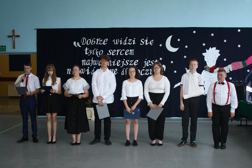 19 czerwca 2019 roku nadszedł długo wyczekiwany moment dla wszystkich uczniów. Oficjalnie zakończył się rok szkolny 2018/2019. Rok pełen wyzwań i sukcesów. O godzinie 8.00 odbyła się w kościele msza święta, po której uczniowie, nauczyciele, rodzice i zaproszeni goście udali się do szkoły na oficjalną uroczystość. W roku szkolnym 2018/2019, pierwszy raz od 19 lat, pożegnano Absolwentów: uczniów klasy VIII.
