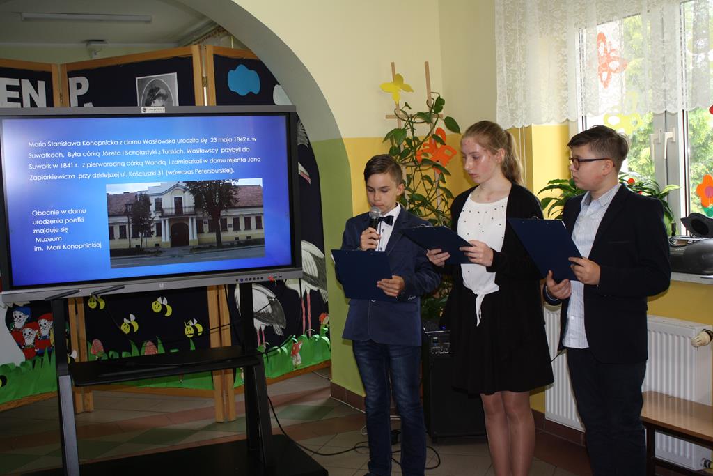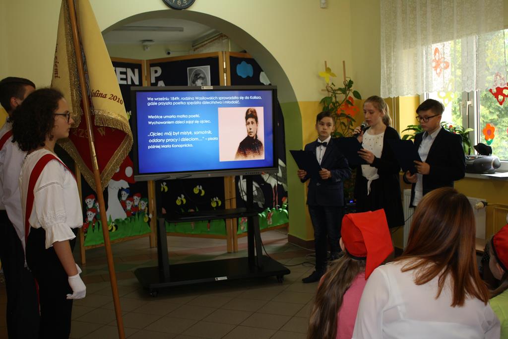 Dnia 20 maja obchodziliśmy w naszej szkole Dzień Patrona. Uczniowie klasy VI przygotowali prezentację przedstawiającą życie i twórczość patronki szkoły – Marii Konopnickiej.
