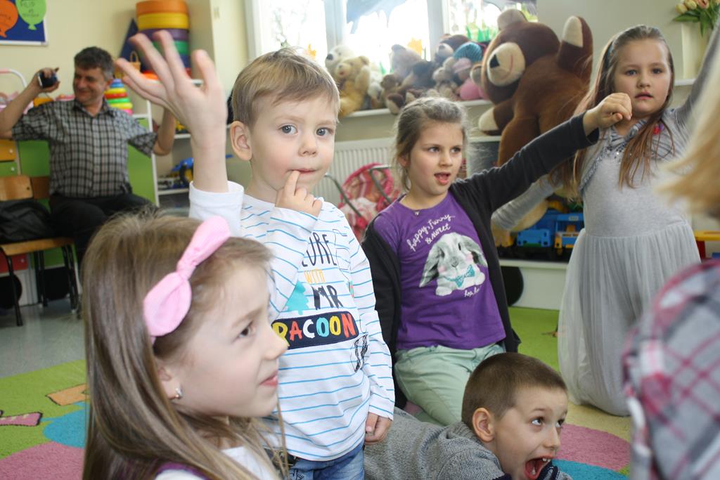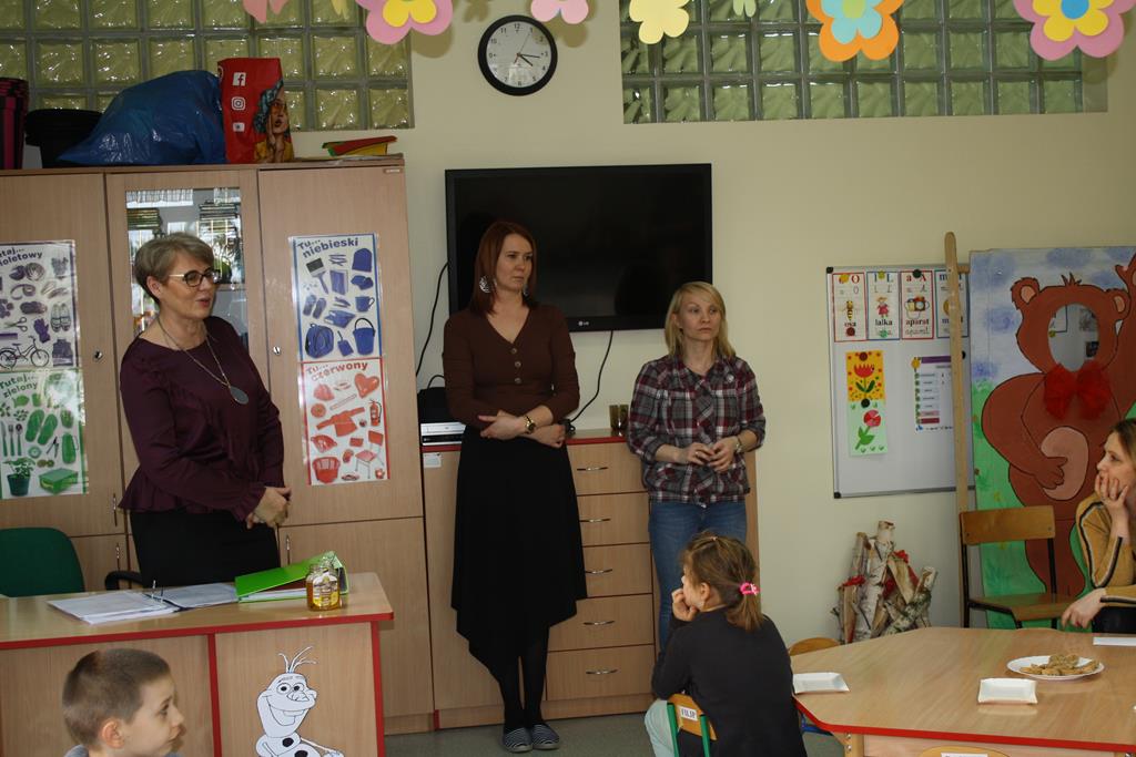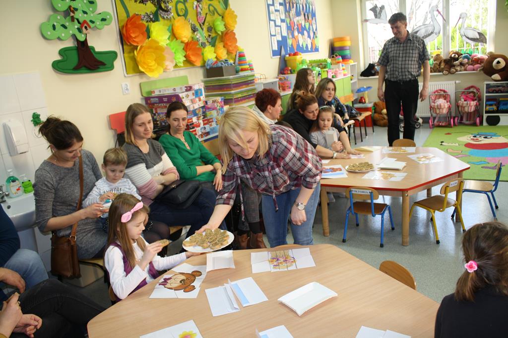 W dniu 12 marca 2019 roku w Oddziałach Przedszkolnych w naszej szkole odbyły się DNI OTWARTE dla rodziców i przyszłych przedszkolaków, którzy będą uczęszczali do przedszkola oraz zerówki od września. Temat przewodni spotkania brzmiał „W świecie pluszowego misia”. W zajęciach udział wzięły dzieci, które uczęszczają już do naszego przedszkola a w przyszłym roku szkolnym „awansują” do zerówki oraz dzieci, które dopiero zaczną swoją przygodę z przedszkolem. Celem było wprowadzenie wszechstronnej stymulacji dzieci poprzez połączenie wrażeń ruchowych, słuchowych, wzrokowych, dotykowych i smakowych, integracja grupy przez wytworzenie radosnej, serdecznej atmosfery oraz rozwijanie umiejętności manualnych. Rodzice poznali organizację i funkcjonowanie placówki, a dzieci miały okazję poznać atmosferę zabaw i zajęć w przedszkolu (m.in. zajęcia muzyczne, plastyczne, ruchowe czy zabawy tematyczne). Przyszli wychowankowie chętnie włączyli się do zajęć zorganizowanych przez nauczycielki. Podczas swobodnych zabaw mieli okazję poznać swoich rówieśników, mogli również oswoić się z nowym miejscem, aby we wrześniu chętnie i bez obaw do niego wrócić. Był to dzień wesoły, kolorowy i pełen wrażeń. Spotkanie zakończyło się misiowym słodkim co nie co dla najmłodszych. Dziękujemy za odwiedziny dzieciom i rodzicom.
