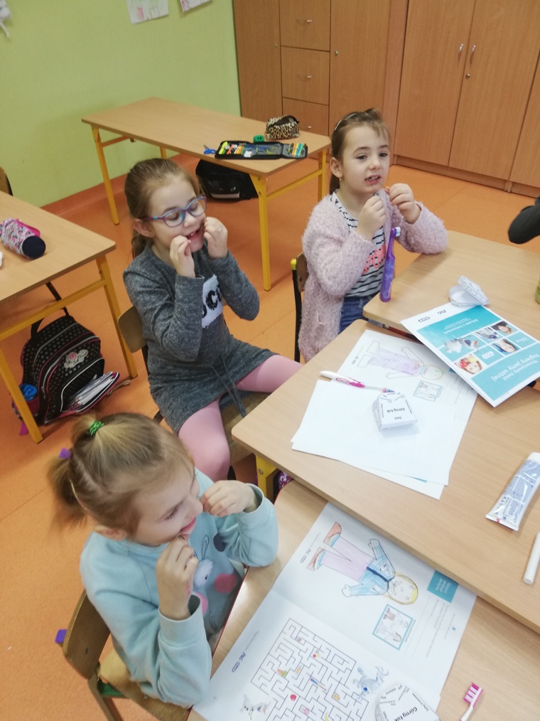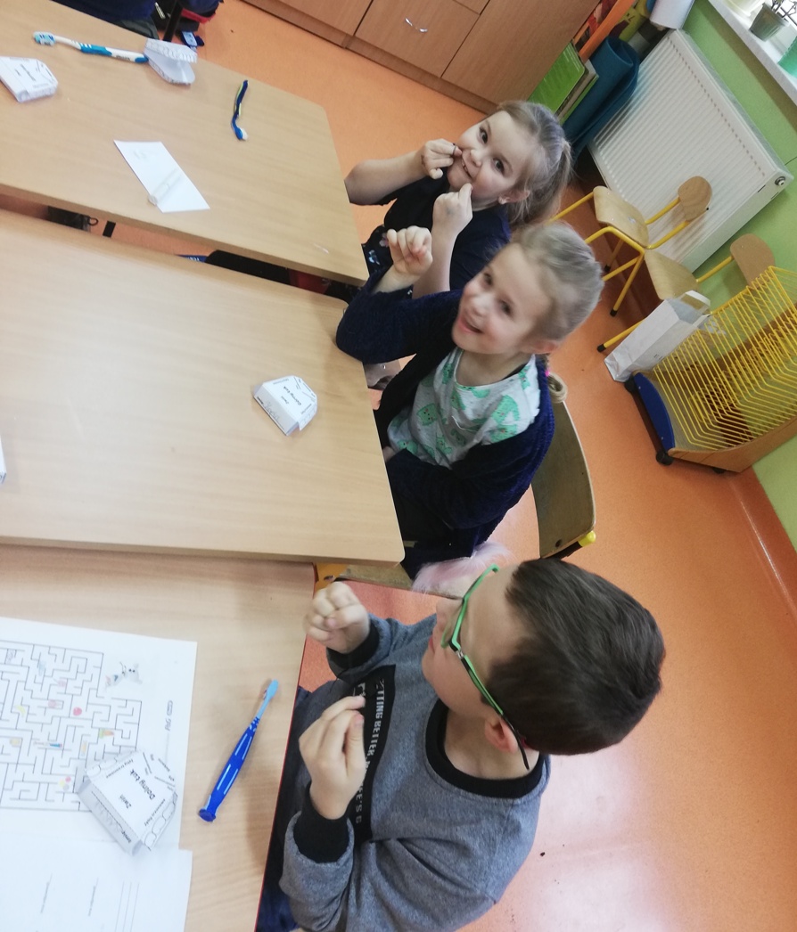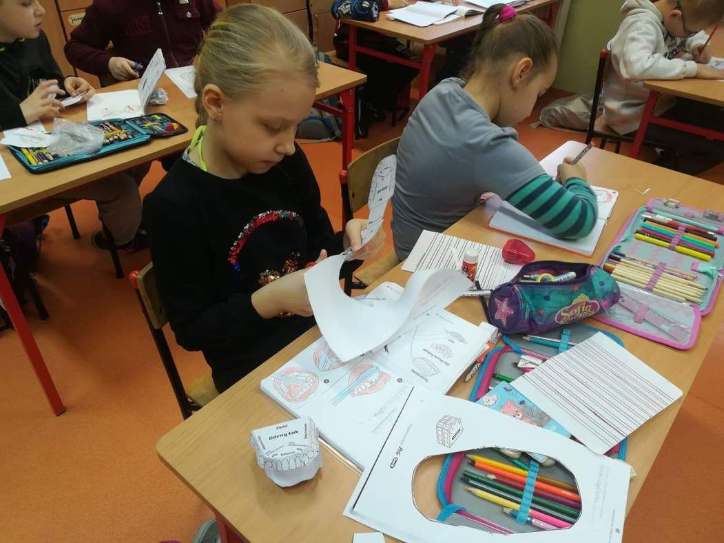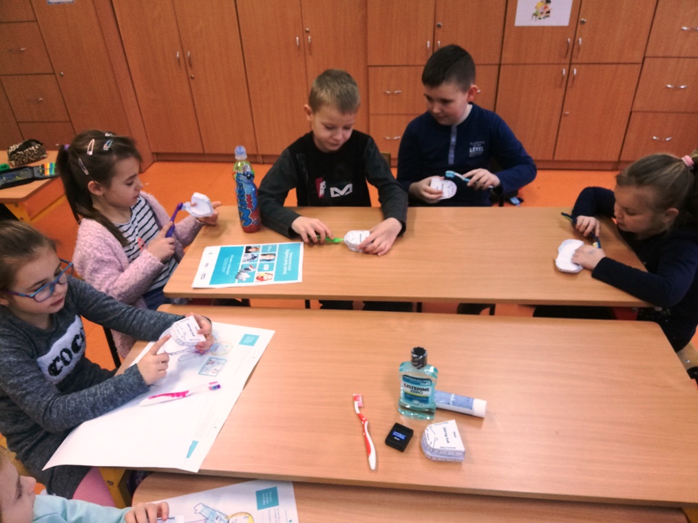 Na przełomie lutego i marca uczniowie klasy I, II i 0 wzięli udział w programie edukacji stomatologicznej Instytutu Blend-a-med Oral-B „ Niesamowity świat higieny jamy ustnej”. Program powstał, aby zaangażować dzieci w zajęcia, podczas których miały zdobywać niezbędną wiedzę na temat zębów oraz dowiedzieć się, jak ważne jest dbanie o ich stan już od najmłodszych lat. Podczas zajęć dzieci obejrzały krótki filmik mówiący z czego składają się zęby oraz jak należy o nie dbać. Otrzymały odpowiednie materiały ćwiczeniowe, w których wykonały zadania specjalne, między innymi musiały narysować swojego dentystę, przejść labirynt czy złożyć model uzębienia. Wykonywaliśmy również doświadczenia, które miały pokazać uczniom jak pasta do zębów chroni szkliwo. Nie zabrakło także instruktażu jak i czym prawidłowo pielęgnować jamę ustną. Wyszczotkowali też swoje ząbki. Uzbrojeni w tę wiedzę jesteśmy pewni, że nasze uśmiechy zawsze będą promienne!