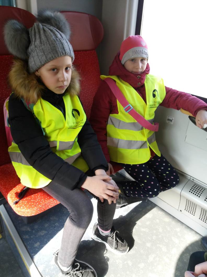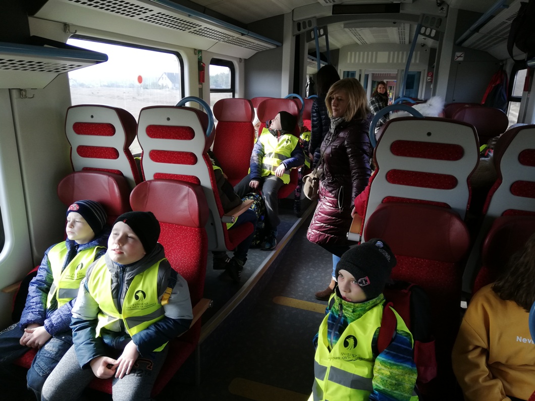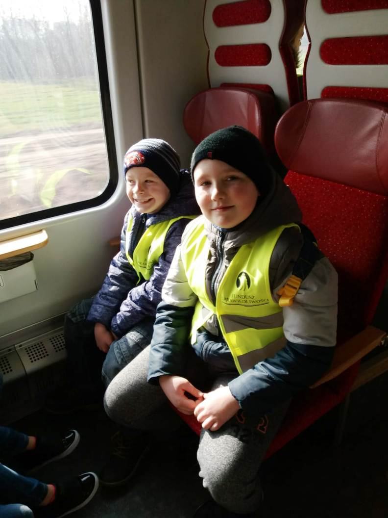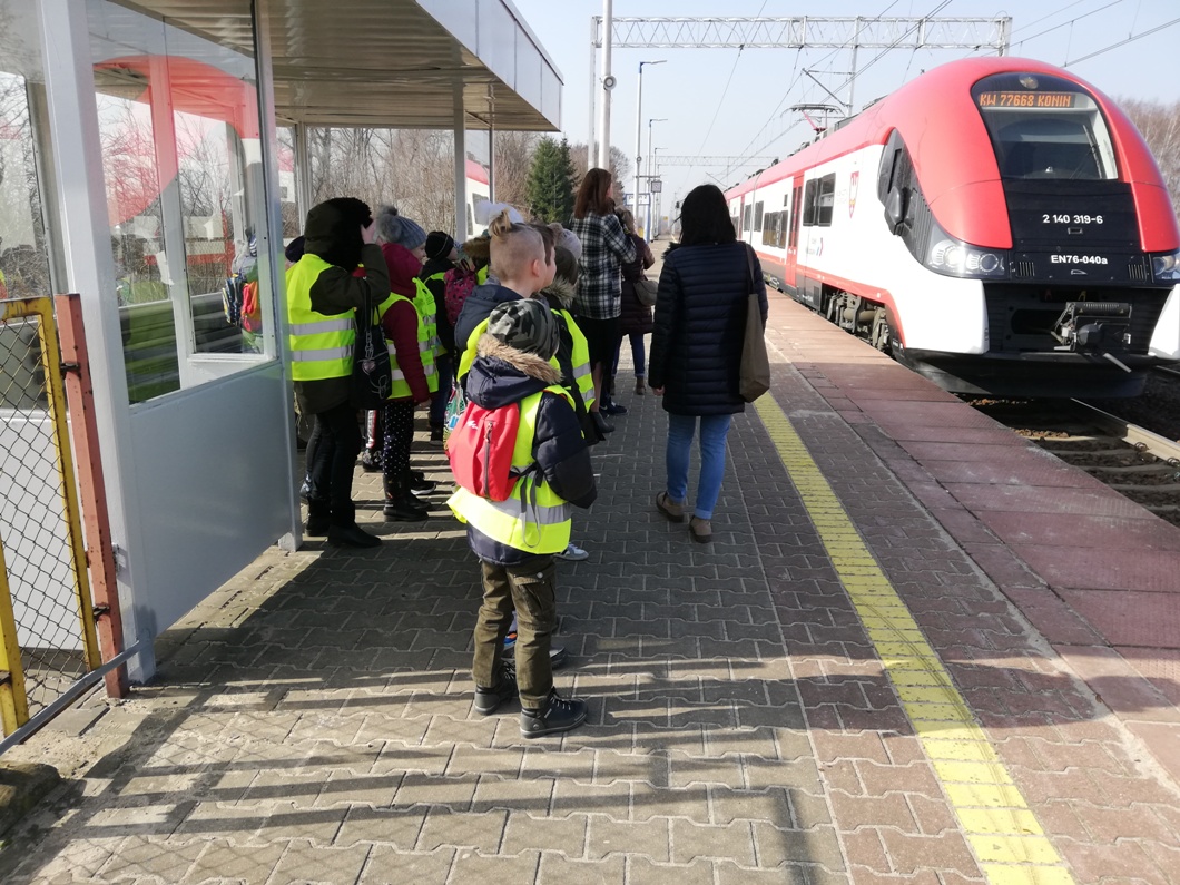 28 lutego 2019 roku uczniowie klasy I, II i IV wybrali się razem z opiekunami do Kina Helios w Koninie na film „Mia i Biały Lew”. Był to wyjątkowy wyjazd, ponieważ po raz pierwszy zdecydowaliśmy się na podróż pociągiem. Przejazd ze stacji Spławie do stacji Konin wzbudził u dzieci wiele emocji, ponieważ niektóre jechały pociągiem po raz pierwszy. Cała podróż była okazją do krótkiego relaksu i podziwiania krajobrazu za oknem oraz do zapoznania się z pracą konduktora, o której to opowiedziała nam przemiła pani konduktor. Okazało się, że praca w zawodzie konduktora, a potem kierownika pociągu, jest poprzedzona kilkumiesięcznym szkoleniem, które kończy się egzaminem teoretycznym i praktycznym. Jego zdanie uprawnia do wykonywania zawodu. Pracownicy drużyn przechodzą również dodatkowe okresowe szkolenia, doskonaląc standardy obsługi pasażerów oraz uzupełniając wiedzę z zakresu przepisów. Konduktorem mogą zostać osoby, które lubią ruch, są aktywne, otwarte na ludzi i łatwo nawiązują kontakty. Ważna jest także umiejętność rozwiązywania problemów. Osobę na tym stanowisku musi cechować odpowiedzialność oraz umiejętność pracy w sytuacjach stresujących.