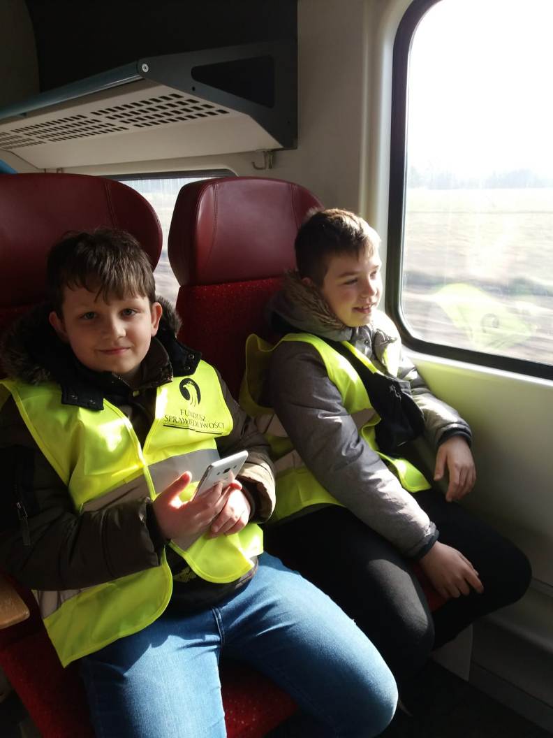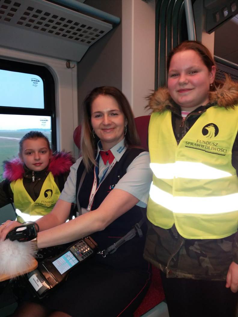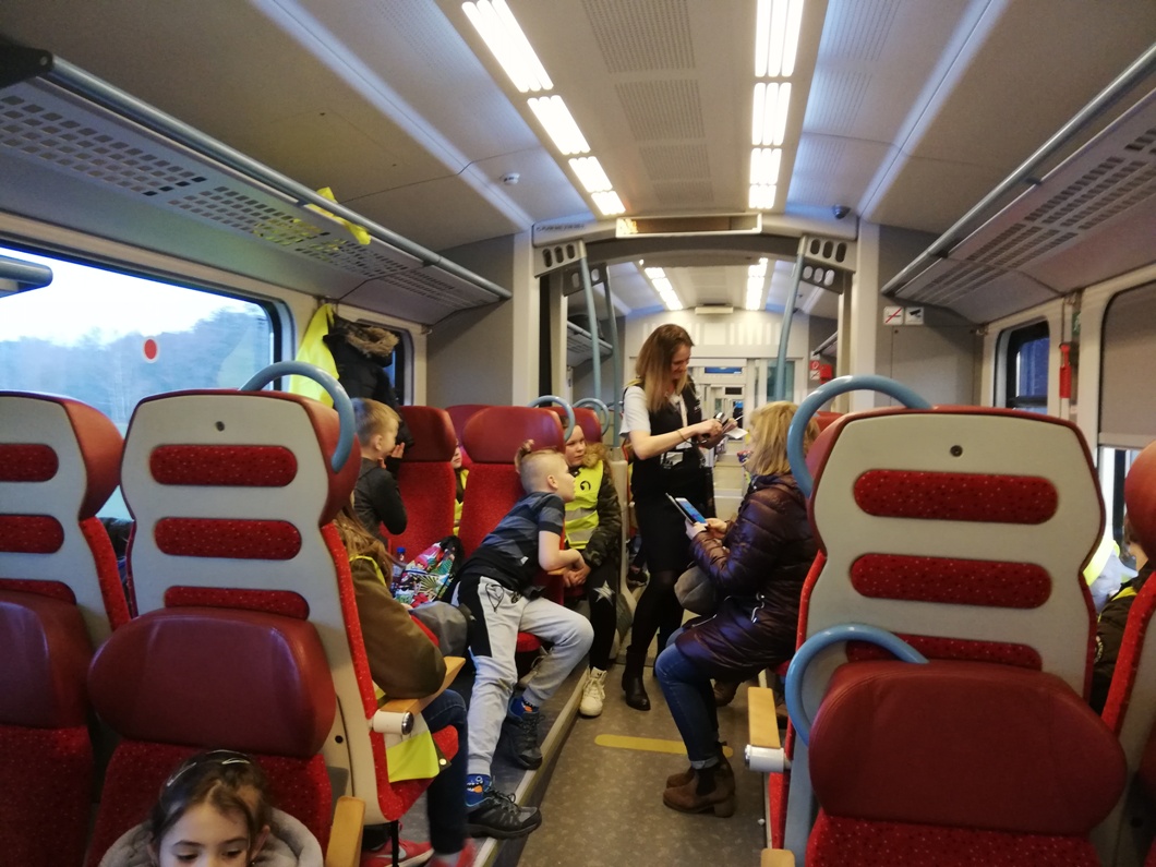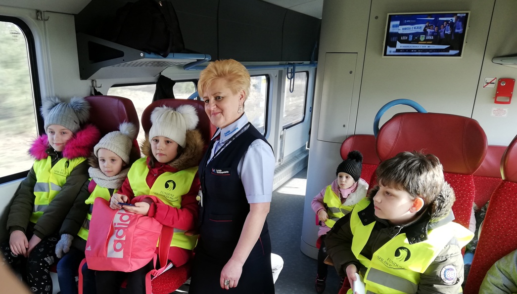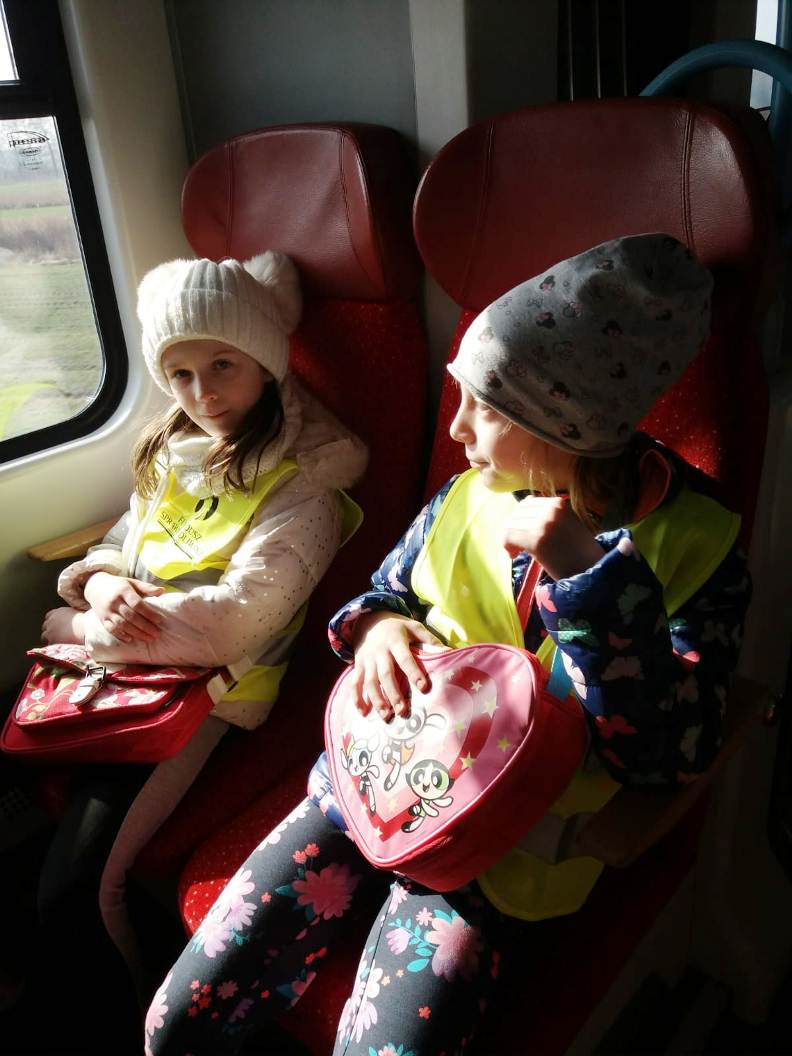 28 lutego 2019 roku uczniowie klasy I, II i IV wybrali się razem z opiekunami do Kina Helios w Koninie na film „Mia i Biały Lew”. Był to wyjątkowy wyjazd, ponieważ po raz pierwszy zdecydowaliśmy się na podróż pociągiem. Przejazd ze stacji Spławie do stacji Konin wzbudził u dzieci wiele emocji, ponieważ niektóre jechały pociągiem po raz pierwszy. Cała podróż była okazją do krótkiego relaksu i podziwiania krajobrazu za oknem oraz do zapoznania się z pracą konduktora, o której to opowiedziała nam przemiła pani konduktor. Okazało się, że praca w zawodzie konduktora, a potem kierownika pociągu, jest poprzedzona kilkumiesięcznym szkoleniem, które kończy się egzaminem teoretycznym i praktycznym. Jego zdanie uprawnia do wykonywania zawodu. Pracownicy drużyn przechodzą również dodatkowe okresowe szkolenia, doskonaląc standardy obsługi pasażerów oraz uzupełniając wiedzę z zakresu przepisów. Konduktorem mogą zostać osoby, które lubią ruch, są aktywne, otwarte na ludzi i łatwo nawiązują kontakty. Ważna jest także umiejętność rozwiązywania problemów. Osobę na tym stanowisku musi cechować odpowiedzialność oraz umiejętność pracy w sytuacjach stresujących.