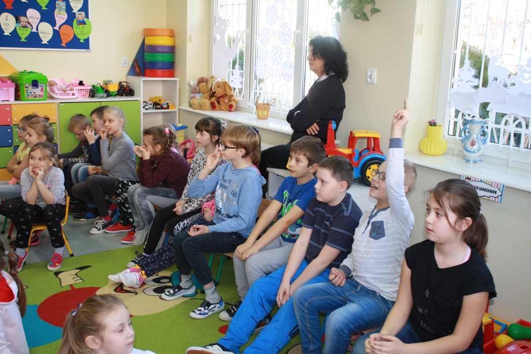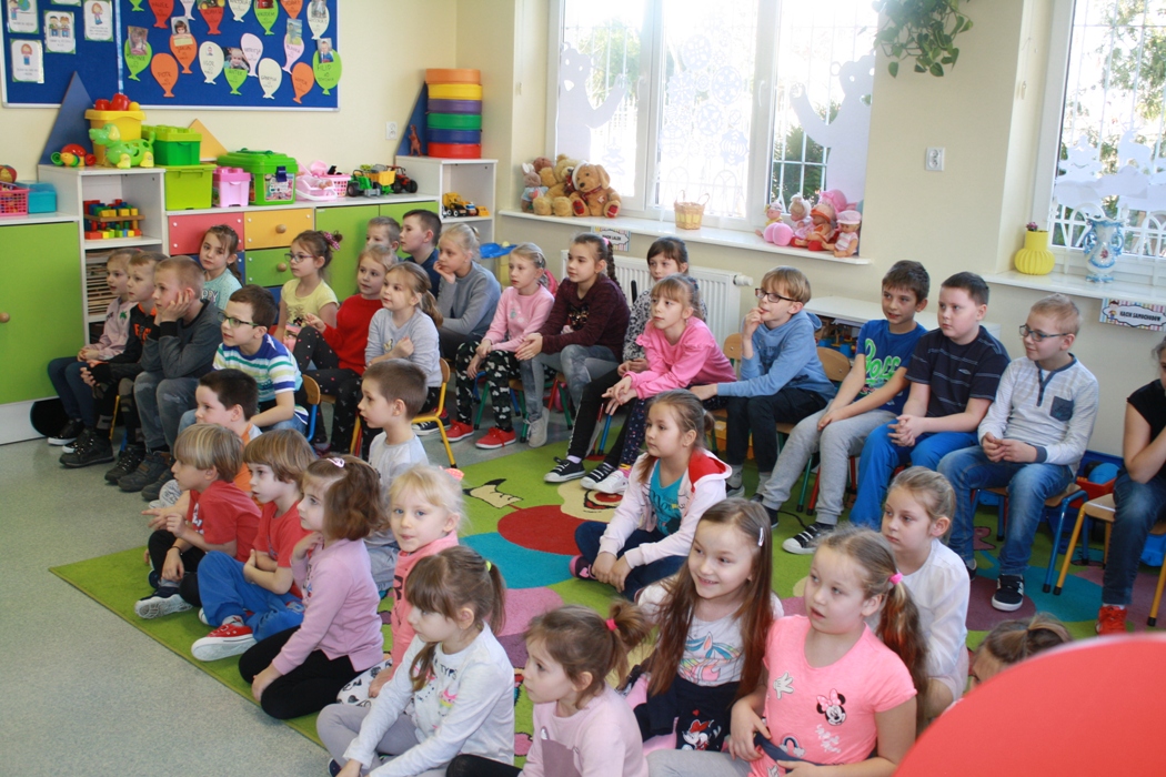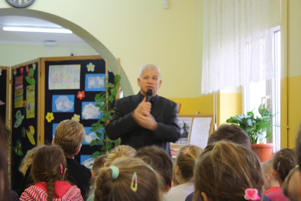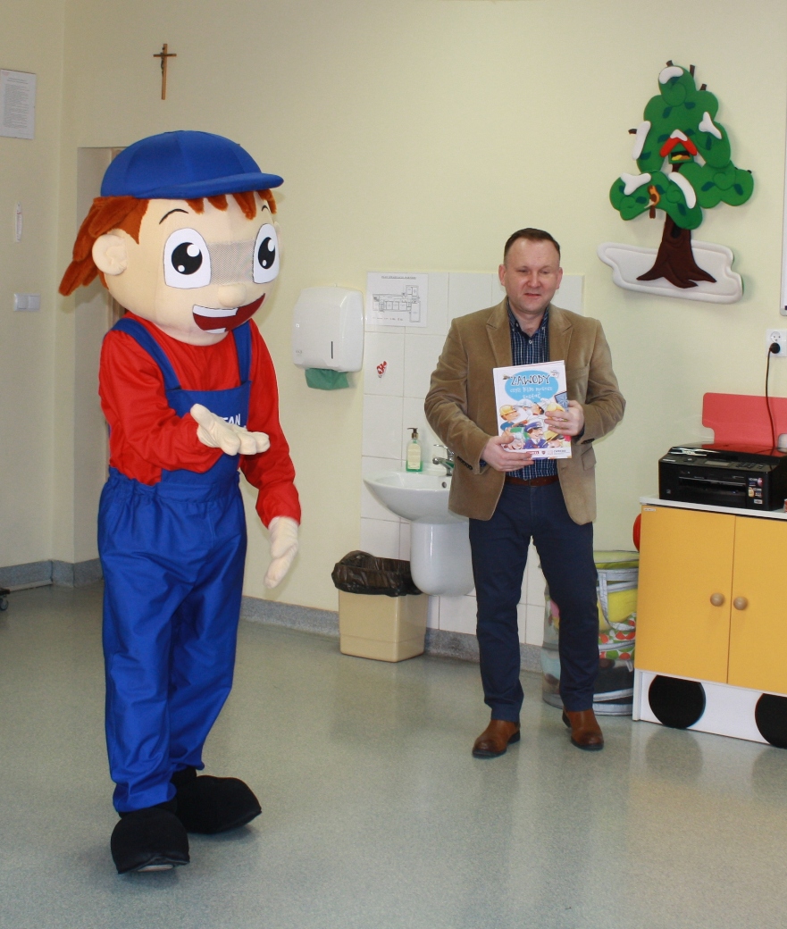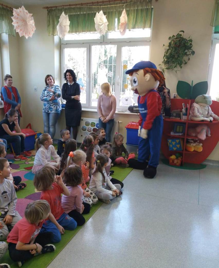 27 lutego do naszej szkoły zawitał Stefan Zawodowiec z Centrum Wsparcia Rzemiosła Kształcenia Dualnego i Zawodowego w Koninie, który rozmawiał z dziećmi na temat różnych zawodów, czytał zagadki i odpowiadał na pytania. Dzieciaki dzieliły się swoją wiedzą o zawodach i chętnie brały udział w zabawie ze Stefanem Zawodowcem.