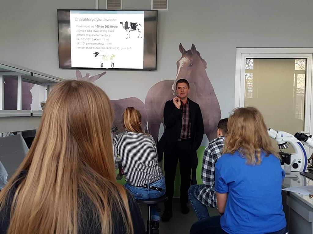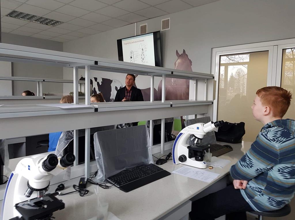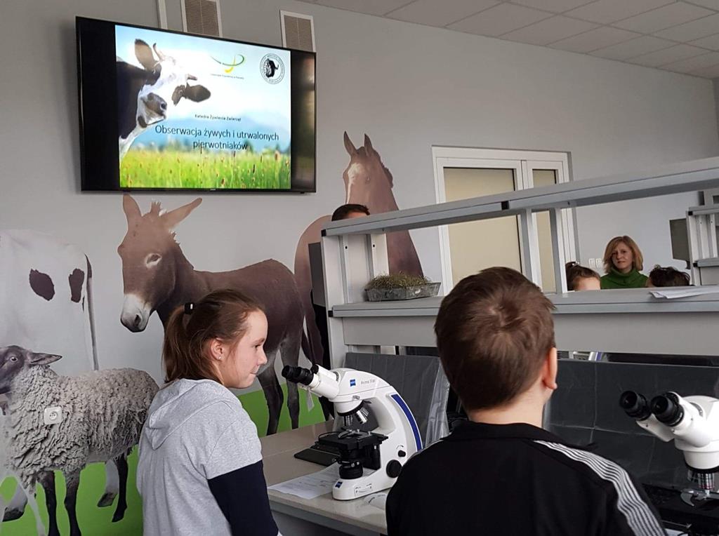 6 lutego 2019r. uczniowie ze szkół podstawowych z Radoliny, Przyjmy, Kawnic i Goliny uczestniczyli w wycieczce naukowej na Wydział Medycyny Weterynarii i Nauki o Zwierzętach Uniwersytetu Przyrodniczego w Poznaniu. Na Wydziale przywitał nas prof. dr hab. Adam Cieślak, który wygłosił wykład na temat pierwotniaków. Następnie uczniowie wykonywali preparaty pod mikroskopem, obserwowali komórki pierwotniaków i barwili płytki szkieletowe. Po tej części laboratoryjnej młodzież zwiedziła Katedrę Fizjologii i Biochemii Zwierząt. Uczestnicząc w wykładzie prowadzonym przez dr Ewę Pruszyńską – Oszmałek i dr Pawła Kołodziejskiego dowiedzieliśmy się min. jaką funkcję pełni trzustka i żółć w organizmie oraz na czym polega metabolizm. W części doświadczalnej młodzież badała ciśnienie oraz wpływ żółci w organizmie na trawienie tłuszczów. Uczniowie pracując w laboratorium, choć przez chwilę mogli poczuć się jak „prawdziwi studenci”.
