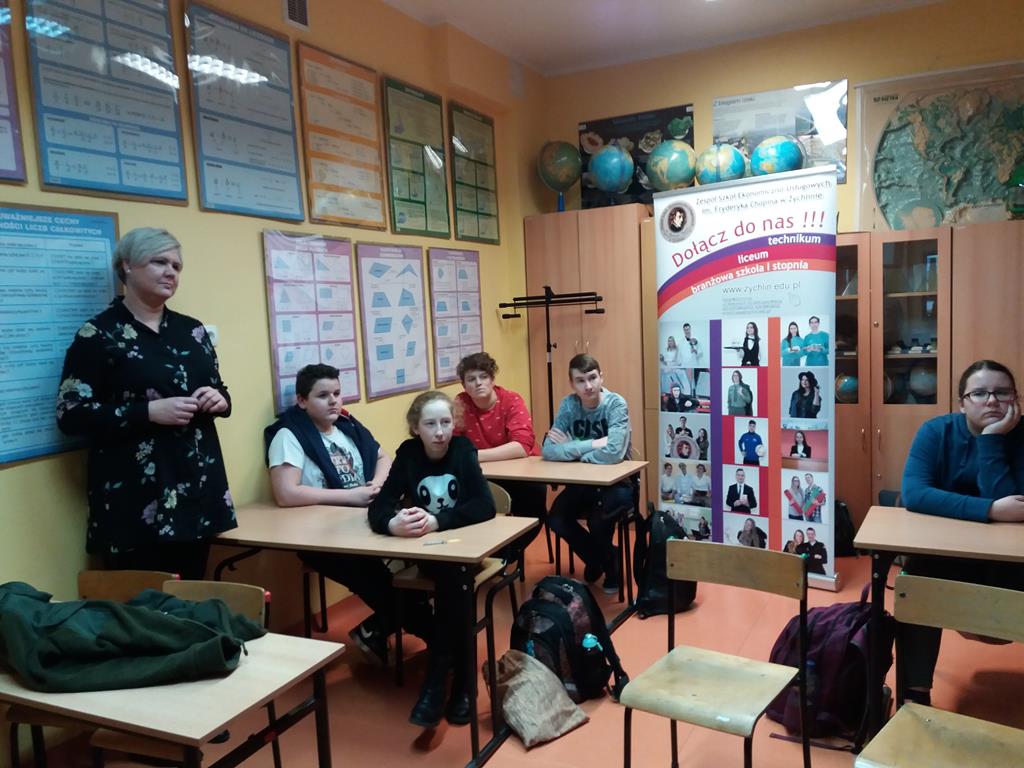 W środę, 13 lutego odwiedzili nas goście z Zespołu Szkół Ekonomiczno – Usługowych w Żychlinie, aby przedstawić uczniom klas VII i VIII ofertę edukacyjną na rok szkolny 2019/2020. Wizyta miała na celu rozwijanie świadomości zawodowej.