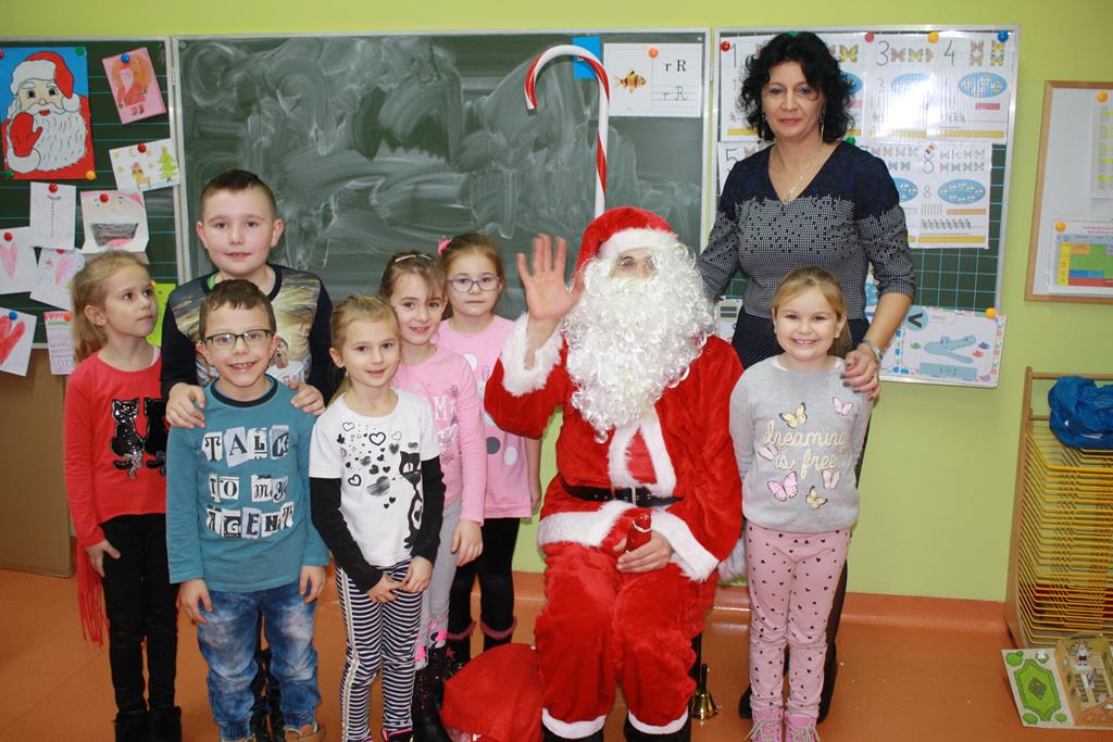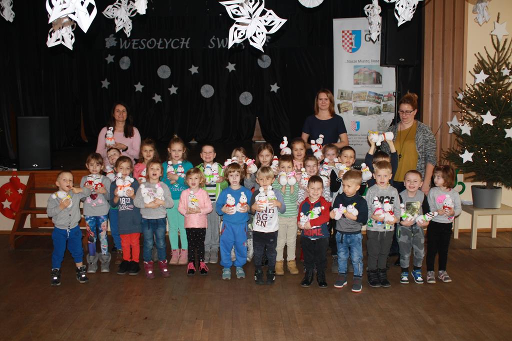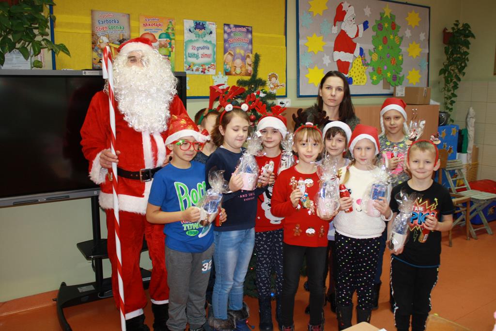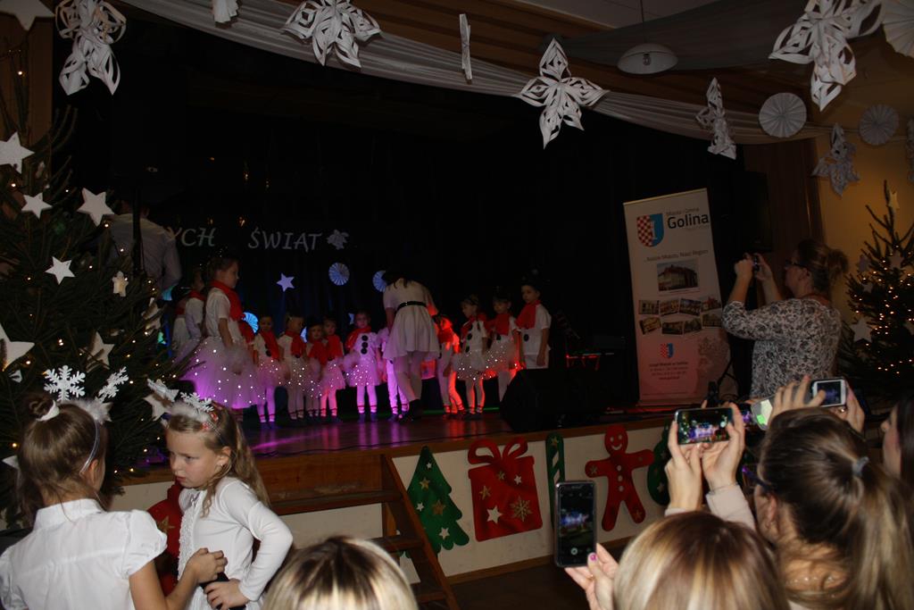 19 grudnia w Oddziałach Przedszkolnych w naszej szkole odbyło się spotkanie Bożonarodzeniowe z rodzicami. Przedszkolaki zaprezentowały montaż słowno-muzyczny pt. „Co słychać u bałwanków”, zaśpiewały piosenki o bałwankach oraz wyrecytowały wierszyki. Zgodnie z tradycją Świąt Bożego Narodzenia nie zabrakło też kolędy „Tryumfy Króla Niebieskiego”, którą dzieci zaśpiewały oraz wykonały do niej układ choreograficzny. Duże brawa rodziców wzbudził taniec „Bałwankowy rap”. Po obejrzeniu występów rodzice otrzymali od swoich dzieci prezenty wykonane wcześniej, własnoręcznie, podczas warsztatów świątecznych w Domu Kultury w Golinie. Tradycyjnie dzieci odwiedził Mikołaj, przynosząc dla każdego z nich prezent. Radość z podarunków była ogromna. Spotkanie zakończyło się wspólnym słodkim poczęstunkiem. Uroczystość przygotowały wychowawczynie z oddziałów przedszkolnych.