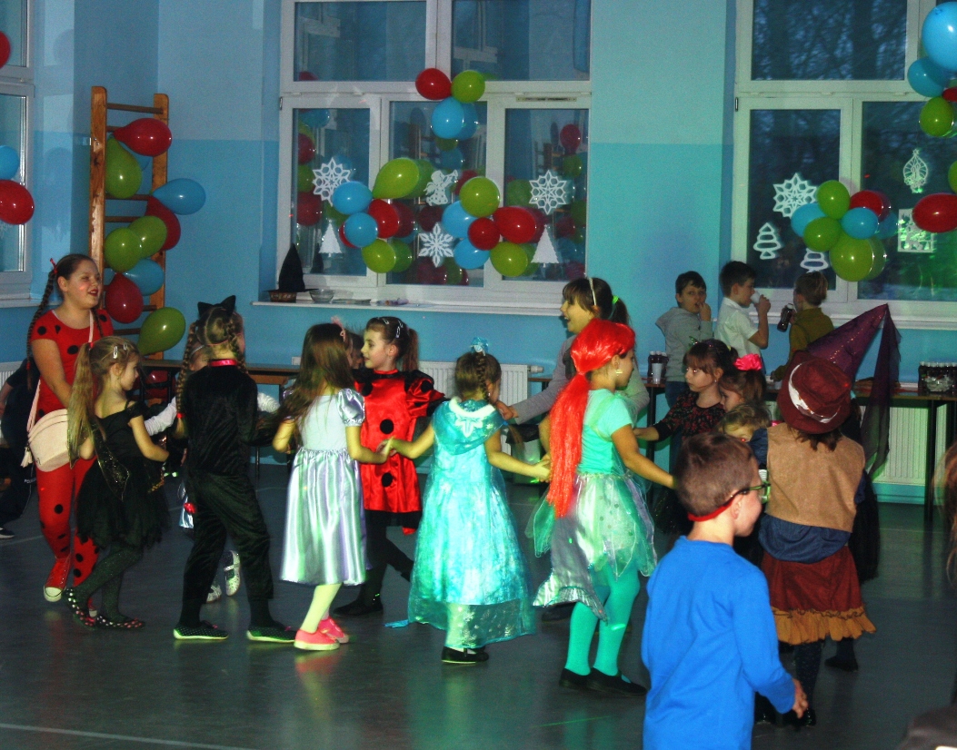 Zabawę choinkową przygotowali nauczyciele we współpracy z Radą Rodziców i samorządem uczniowskim . Pięknie udekorowana sala przez całe piątkowe popołudnie była sceną tańców, zabaw i swawoli uczestników tej lubianej i wyczekiwanej imprezy . Były konkursy, zabawy, kącik z loterią fantową ,z której losy rozeszły się jak świeże bułeczki, sklepik prowadzony przez uczniów z samorządu uczniowskiego oraz mini kafejka dla amatorów kawy i słodkiego co nie co. O nastroju panującym na sali poświadczą zdjęcia, a nam pozostaje podziękować wszystkim tym, którzy brali udział w przygotowaniach do zabawy i jej obsłudze. Już teraz zapraszamy za rok, życząc w jego trakcie, równie pozytywnych wrażeń!