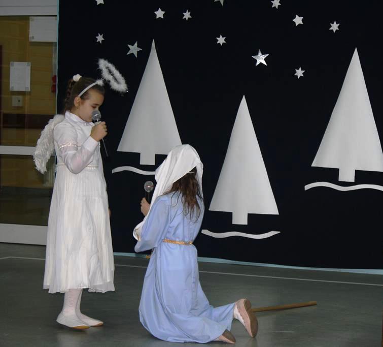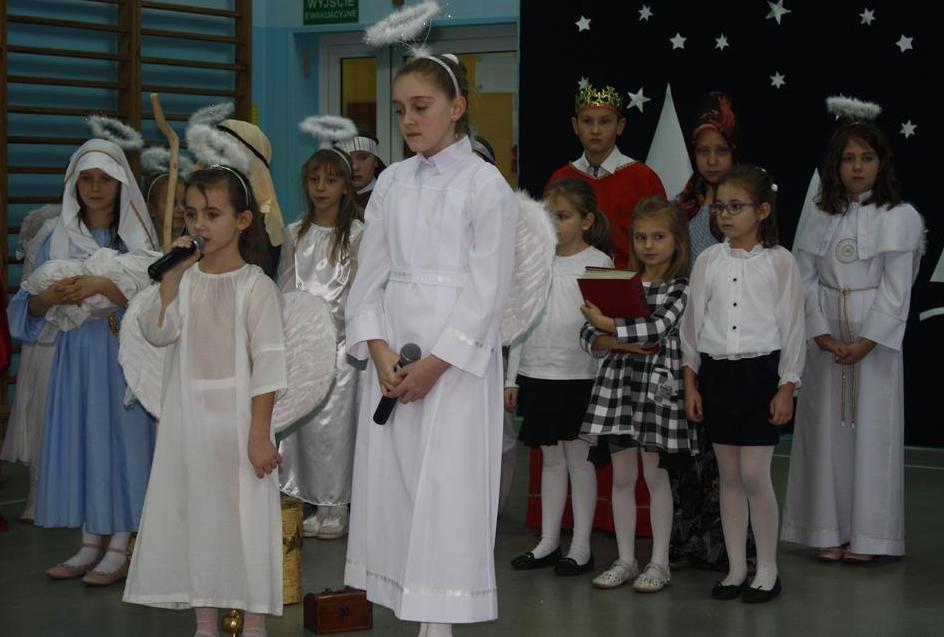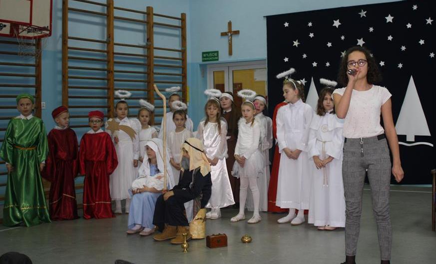 Przedstawienie w tym roku nosiło tytuł: „ Jak to jest z tymi świętami?”. Dzięki dokładnemu opisowi z Ewangelii świetego Mateusza, i Łukasza, który odczytała wszystkim „ babcia Wiktoria” publiczność po raz kolejny mogła przeżyć historię Maryi i Józefa od momentu Zwiastowania w Nazarecie do momentu szczęśliwych narodzin w Betlejem. Do nich i małego Jezusa przybyli pasterze oraz trzej mędrcy, którzy złożyli Dzieciątku pokłon i dary. Całość przedstawienia, pokazująca scenki z życia nowonarodzonego Dzieciątka, pasterzy, Heroda, mędrców oraz aniołów przeplatana była scenkami z życia trzech małych dziewczynek, które podczas rozmowy z babcią, próbowały się dowiedzieć dlaczego Święta Bożego Narodzenia są tak ważne dla każdego z nas. O dobrą atmosferę i miłe doznania wizualne oraz słuchowe zadbali zaś zdolni aktorzy – tutaj uczniowie klasy I i II oraz wokalistki- Alicja i Wiktoria (z klasy VIII) oraz instrumentaliści Michalina( z klasy IV) oraz Krzysztof ( z klasy VII) .