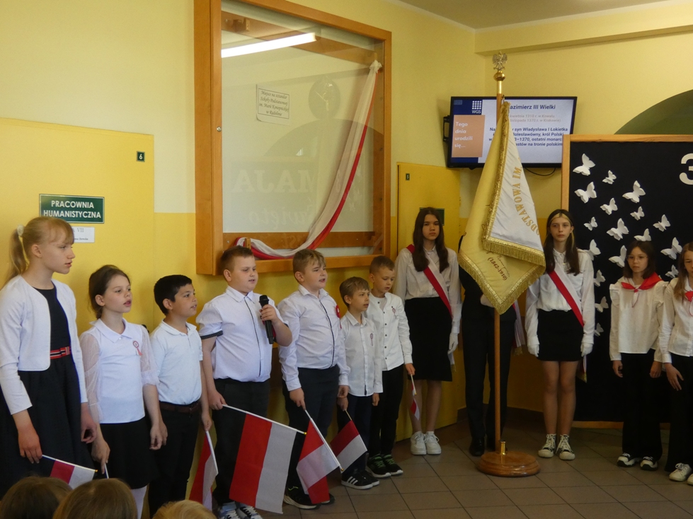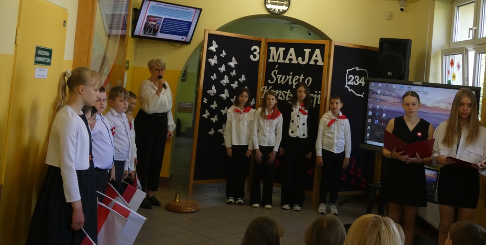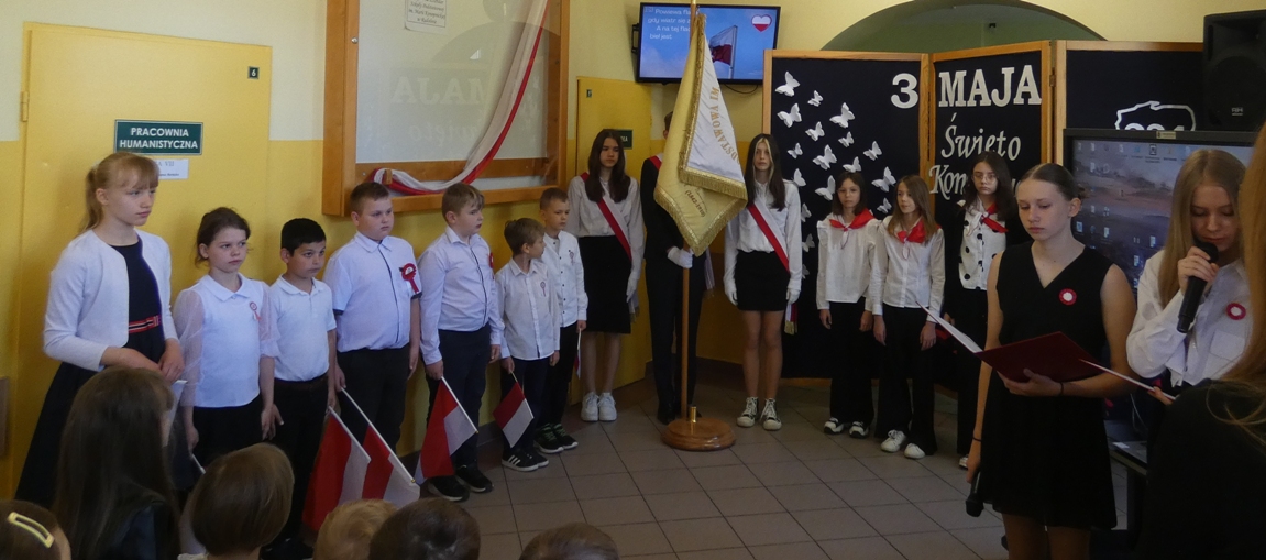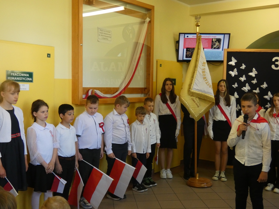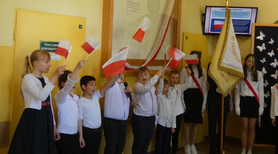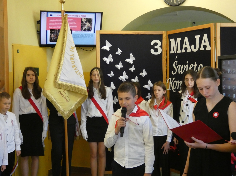 W dniu 30.04 w naszej szkole odbyła się uroczystość z okazji 234. rocznicy uchwalenia Konstytucji 3 Maja – pierwszej w Europie i drugiej na świecie spisanej konstytucji. Z tej okazji uczniowie przypomnieli historię tego ważnego dokumentu oraz jego autorów: króla Stanisława Augusta Poniatowskiego, Hugo Kołłątaja, Ignacego Potockiego i Stanisława Małachowskiego. Występom towarzyszyła recytacja wierszy, pieśni patriotyczne oraz wprowadzenie sztandaru Szkoły Podstawowej im. Marii Konopnickiej.
