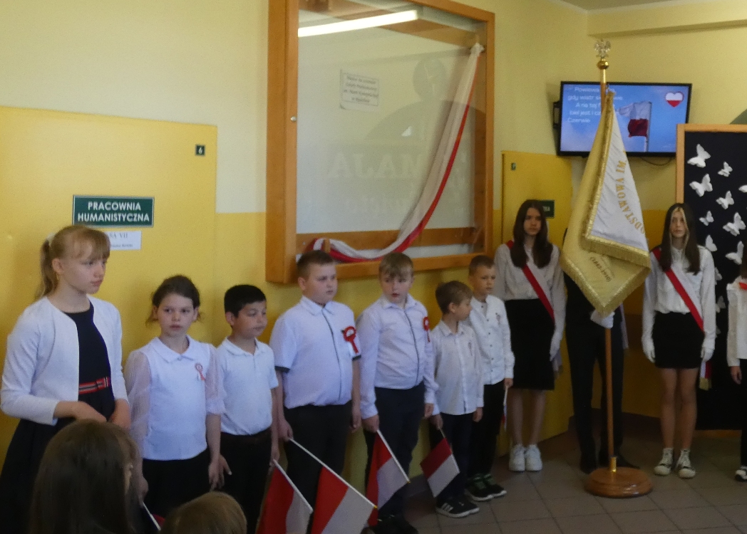 Uroczystość była również okazją do uczczenia Dnia Flagi, który obchodzimy 2 maja. Uczniowie przypomnieli znaczenie barw narodowych – biel symbolizuje czystość i lojalność, a czerwień odwagę i poświęcenie.