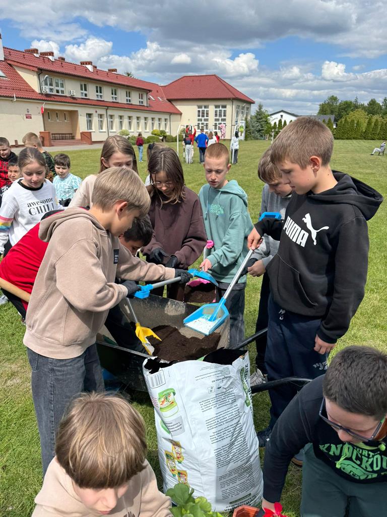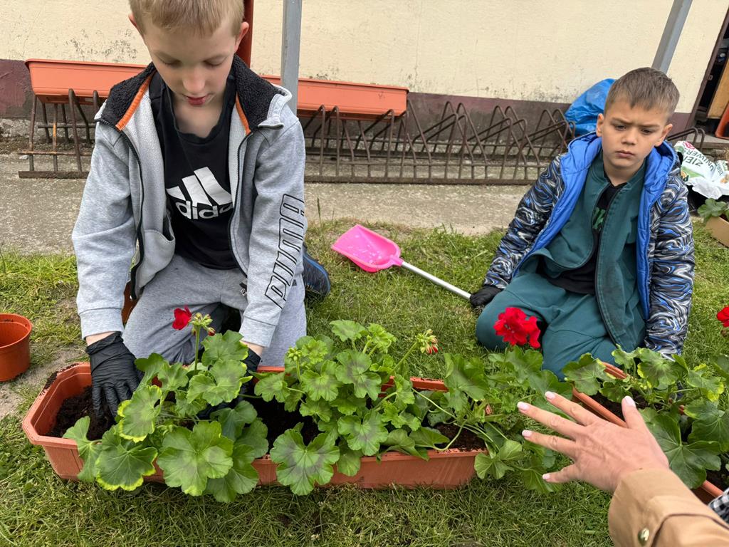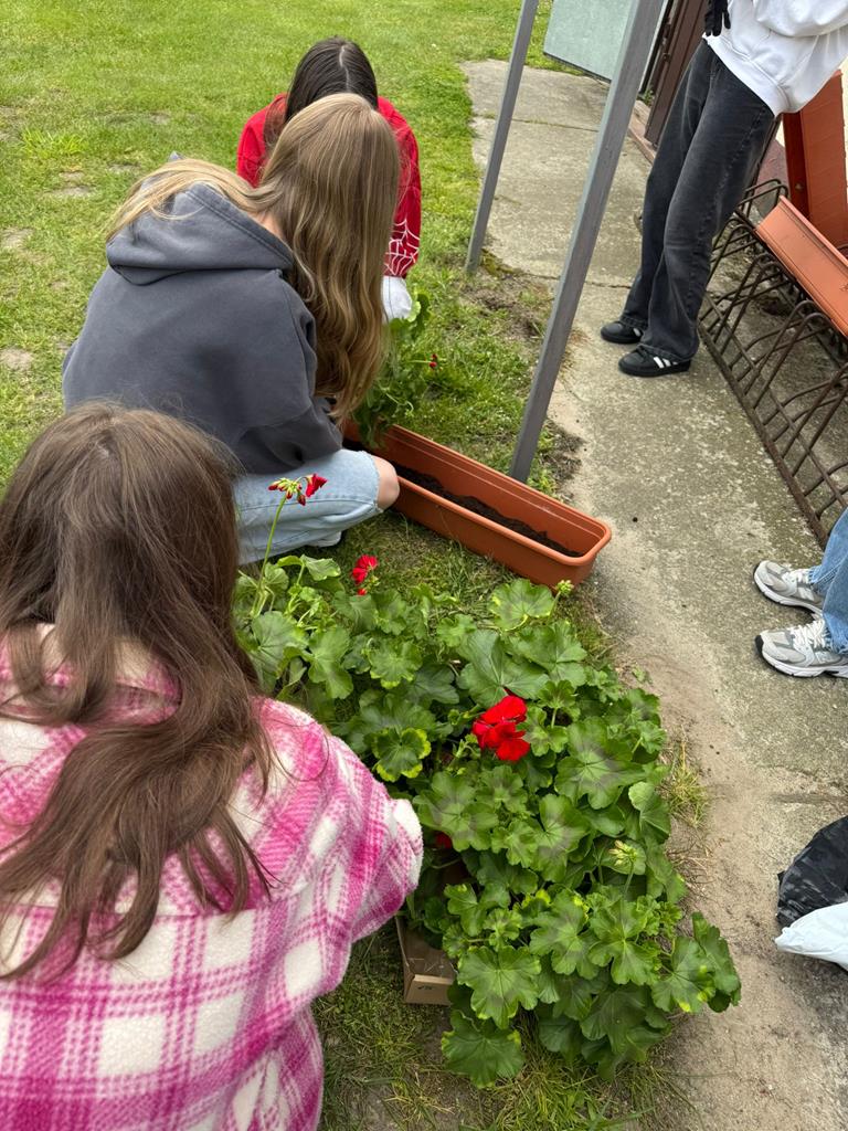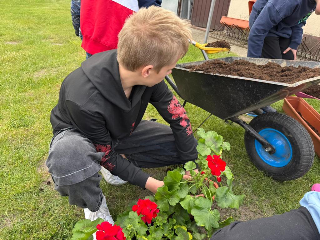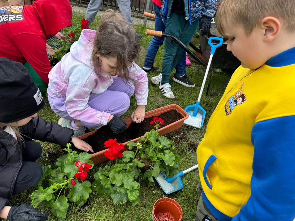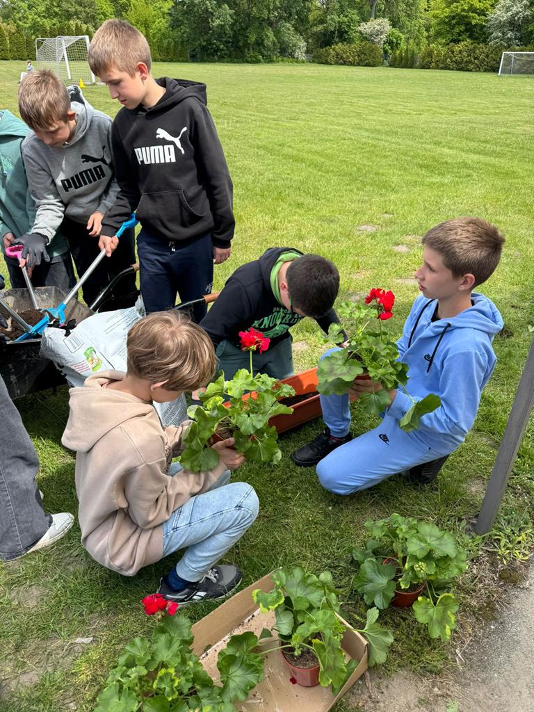 Od lat pamięta o nim również społeczność naszej szkoły. W tym roku każda klasa posadziła pelargonie w doniczkach oraz drzewka - symbol Dnia Ziemii. Uczniowie z wielkim zaangażowaniem wykonali zadanie.