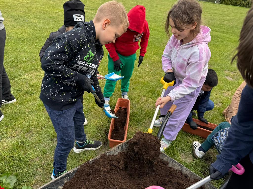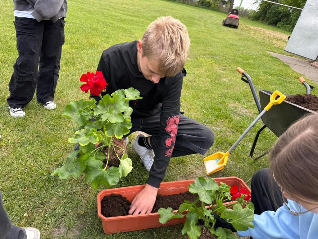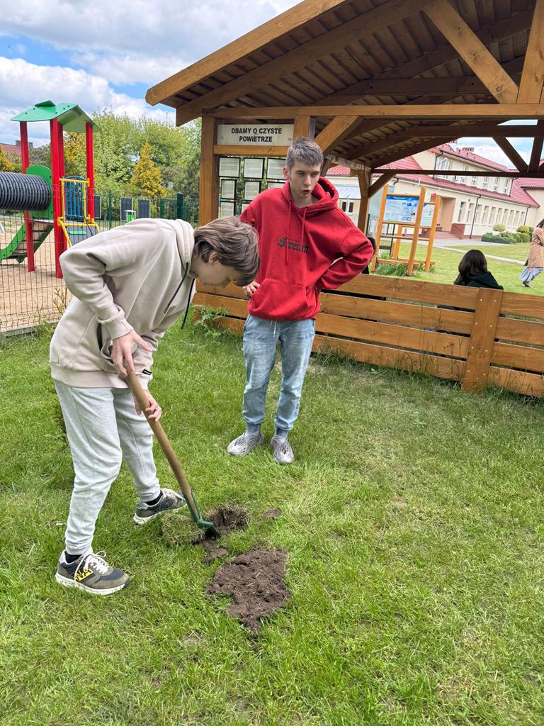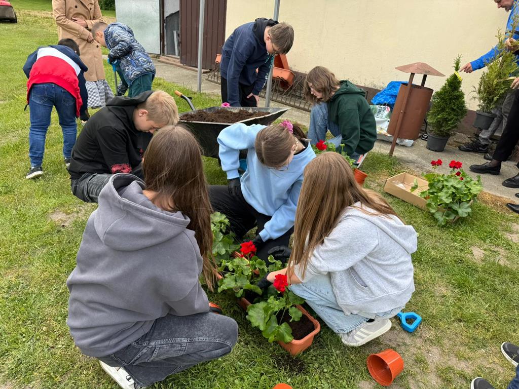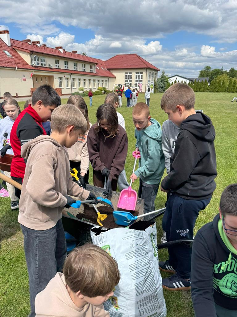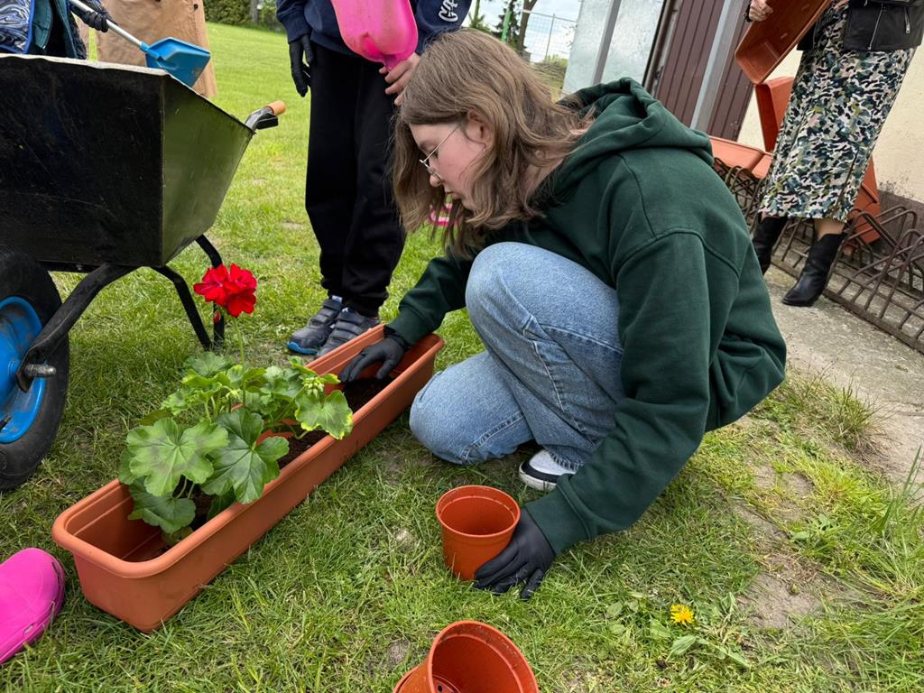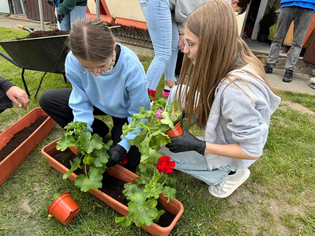 Od lat pamięta o nim również społeczność naszej szkoły. W tym roku każda klasa posadziła pelargonie w doniczkach oraz drzewka - symbol Dnia Ziemii. Uczniowie z wielkim zaangażowaniem wykonali zadanie.