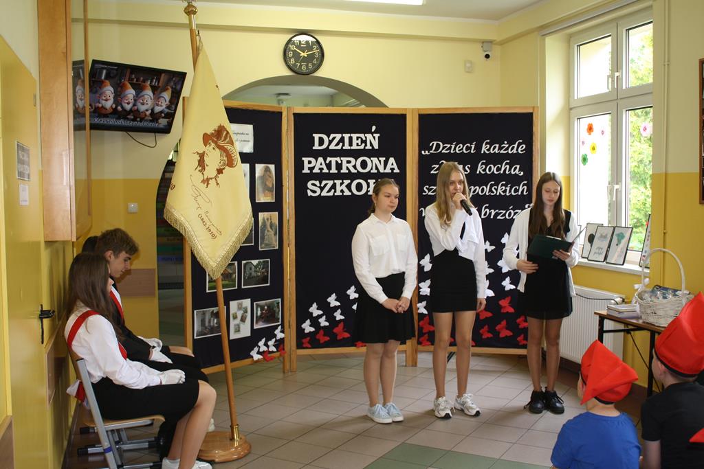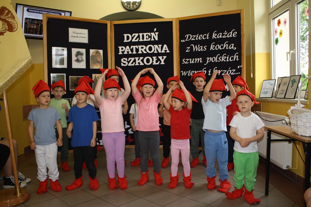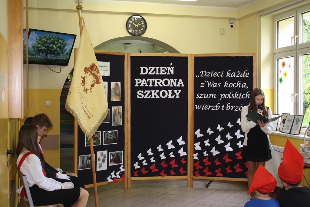 Uroczystość stanowiła podsumowanie działań związanych z patronką szkoły realizowanych w ciągu ostatnich dwóch tygodni. Na lekcjach języka polskiego w klasach IV – VIII przeprowadzone zostały lekcje poświęcone omówieniu utworów Marii Konopnickiej. W klasach VII – VIII była to ,,Rota”, w klasie VI ,,A jak poszedł król na wojnę”, w klasie V ,,Tam, w moim kraju”, a w klasie IV ,,Pieśń o domu”. Również uczniowie klas I – III poznawali wiersze Marii Konopnickiej oraz rysowali ilustracje.
