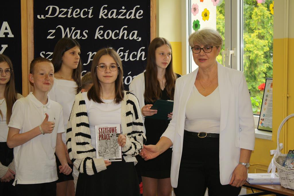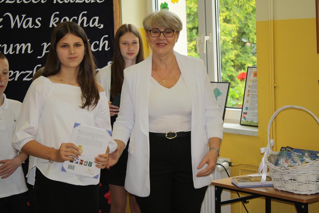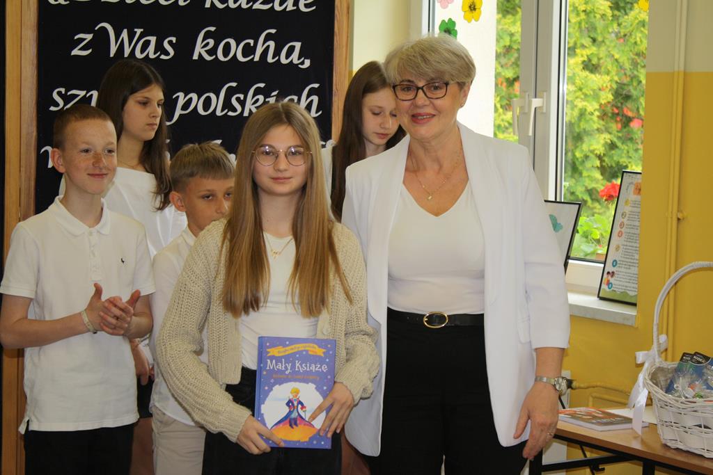 W swoim wystąpieniu Pani Dyrektor Alina Kozłowska zwróciła uwagę na przypadającą w tym roku ważną dla naszej szkoły rocznicę, czyli 15-lecie nadania szkole imienia Marii Konopnickiej oraz na ponadczasowe wartości płynące z utworów poetki.