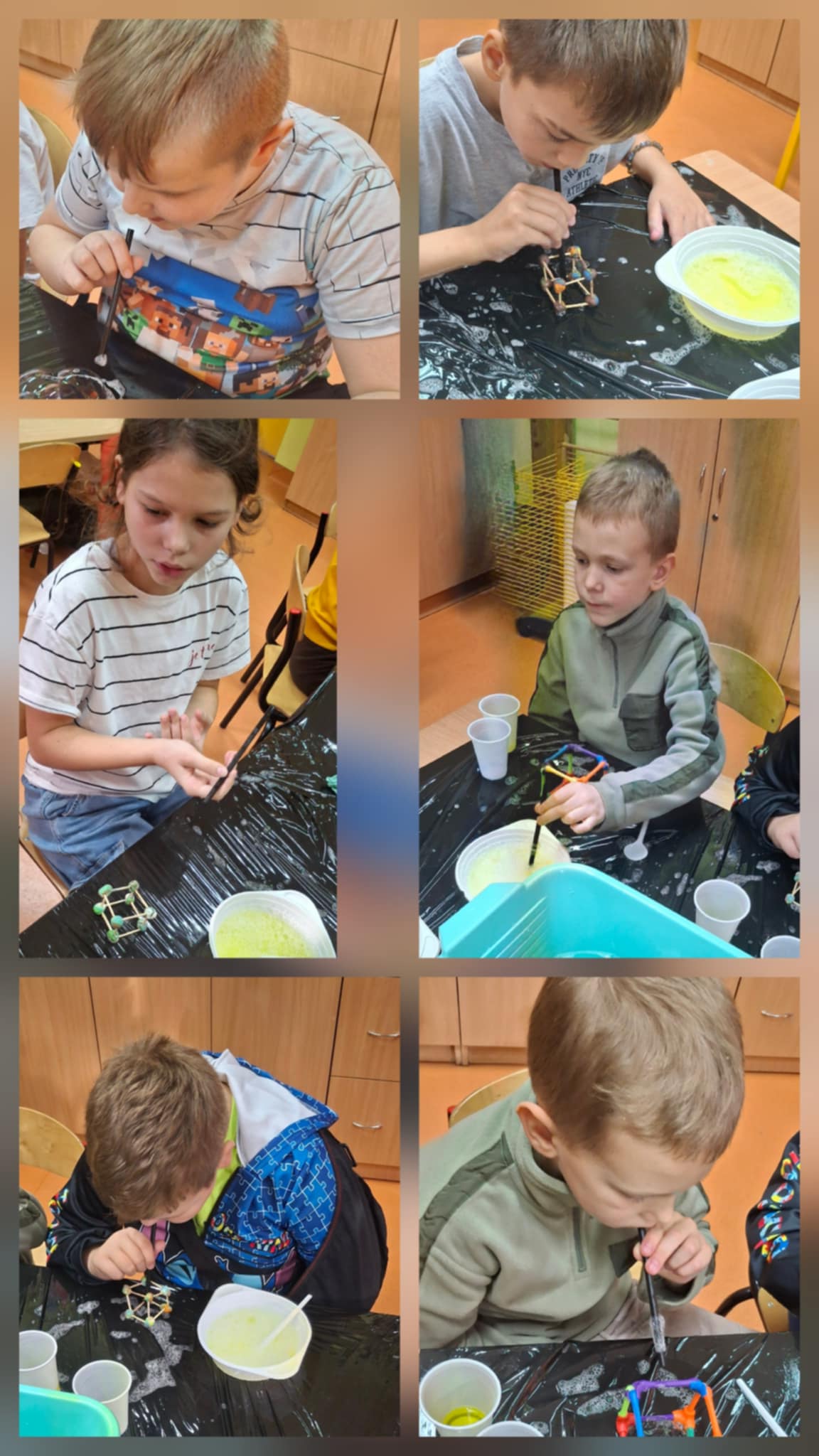 Zajęcia dostarczyły wielu emocji i radości z odkrywania. Dzieci samodzielnie formułowały wnioski, uczyły się pracy zespołowej i przekonały się, że nauka może być fascynującą zabawą. W klasie panowała atmosfera prawdziwego laboratorium – pełna ciekawości, współpracy i naukowych odkryć.