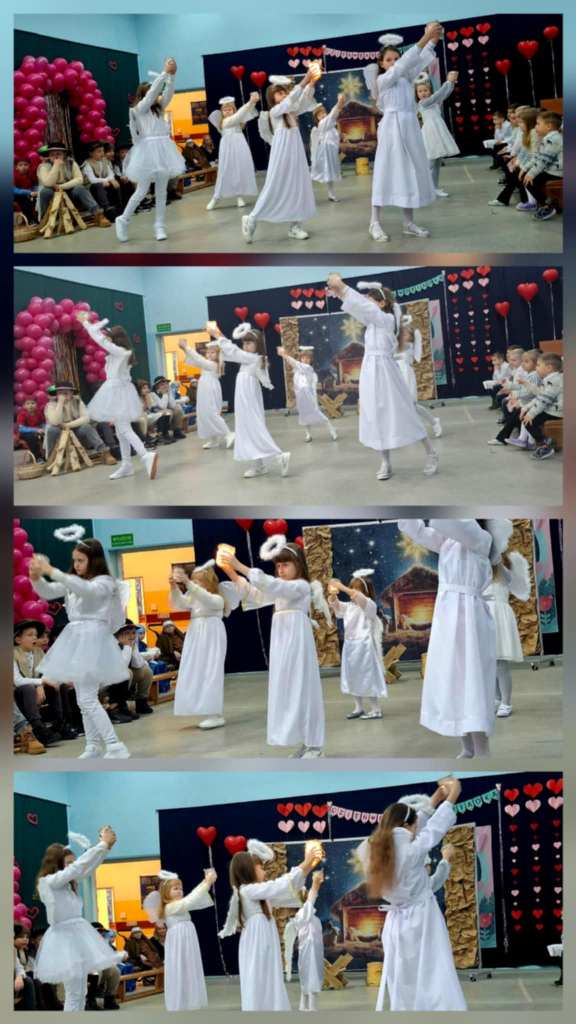 Dla zaproszonych gości najmłodsi uczniowie szkoły przygotowali bogaty program artystyczny. Występy nawiązywały do atmosfery Bożego Narodzenia i opowiadały historię narodzin Dzieciątka Jezus w betlejemskiej stajence, przypominając jednocześnie o wartościach takich jak miłość, dobro, bliskość drugiego człowieka i wzajemny szacunek.