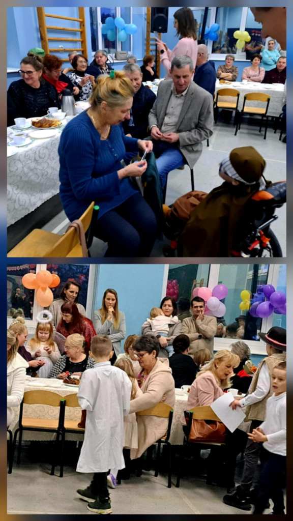 Po części artystycznej głos zabrała Pani Dyrektor, a następnie wnuczęta obdarowały swoich Dziadków własnoręcznie przygotowanymi upominkami. Spotkanie zakończyło się słodkim poczęstunkiem oraz wspólnymi zdjęciami, które na długo pozostaną miłą pamiątką tego wyjątkowego dnia.