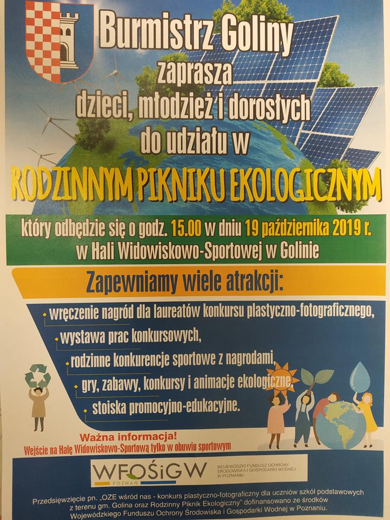 Burmistrz Goliny zaprasza uczniów klasy I-VI do udziału w konkursie plastyczno-fotograficznym pn. "OZE WŚRÓD NAS". Szczegóły konkursu znajdują się w załącznikach.